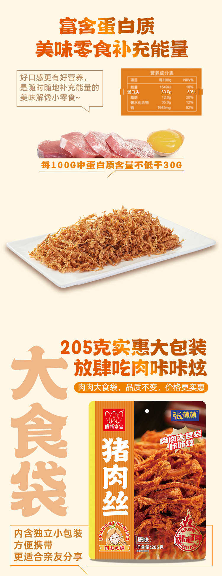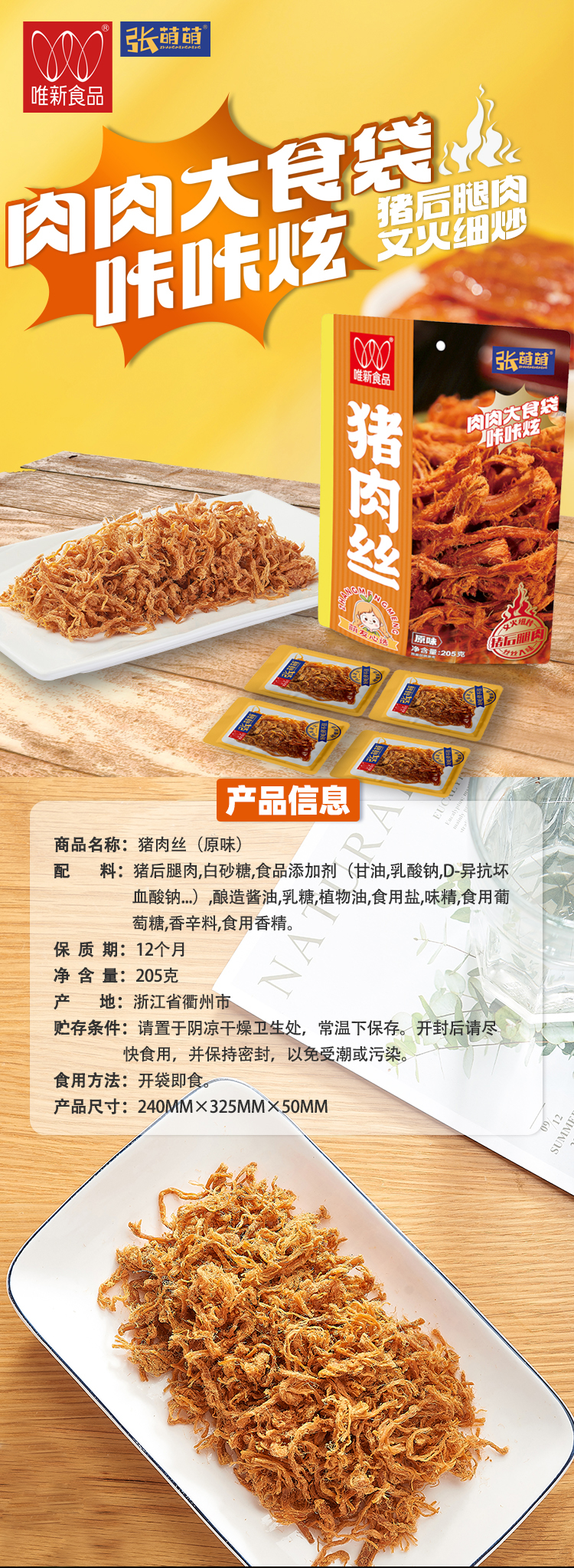 【休闲食品】205g大包装猪肉丝 【拍下赠48g肉脯脆脆芝麻味1袋】