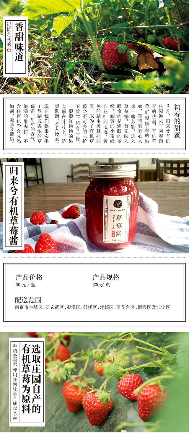 归来兮有机草莓酱 500g/瓶 包邮 仅限南京市主城区