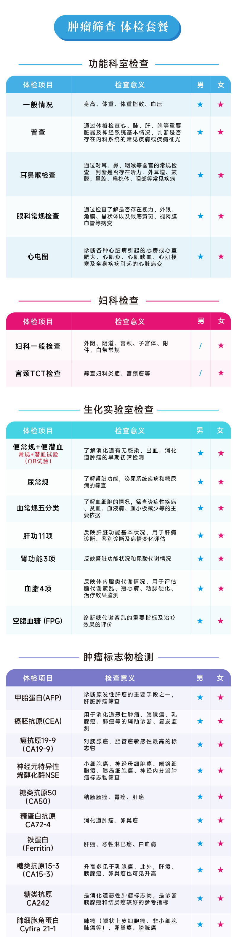 肿瘤筛查 特惠套餐(男/女)