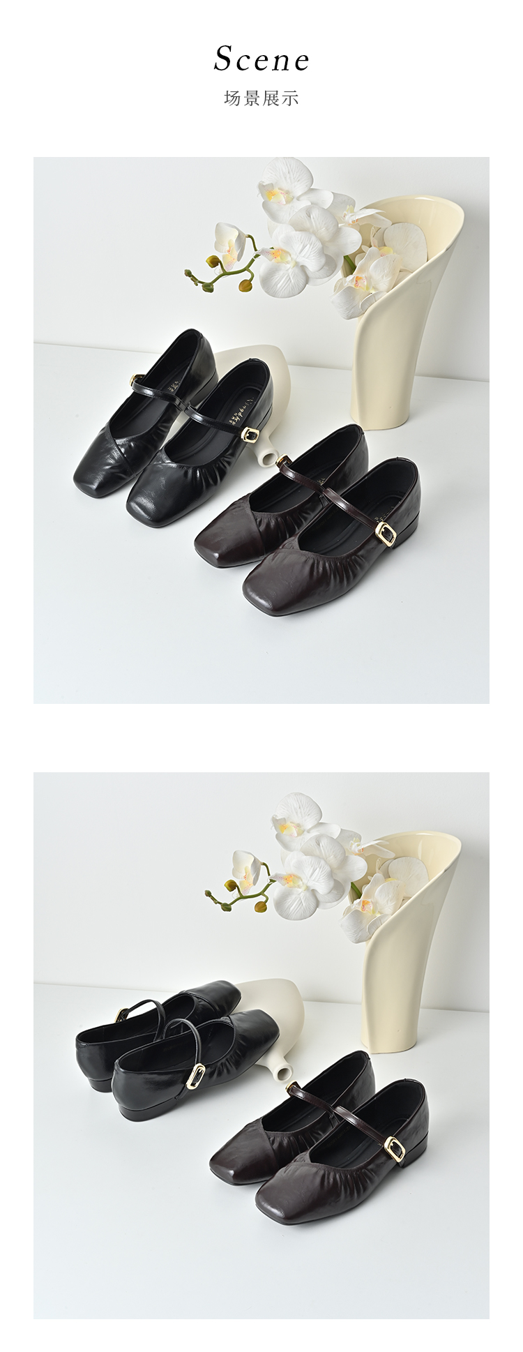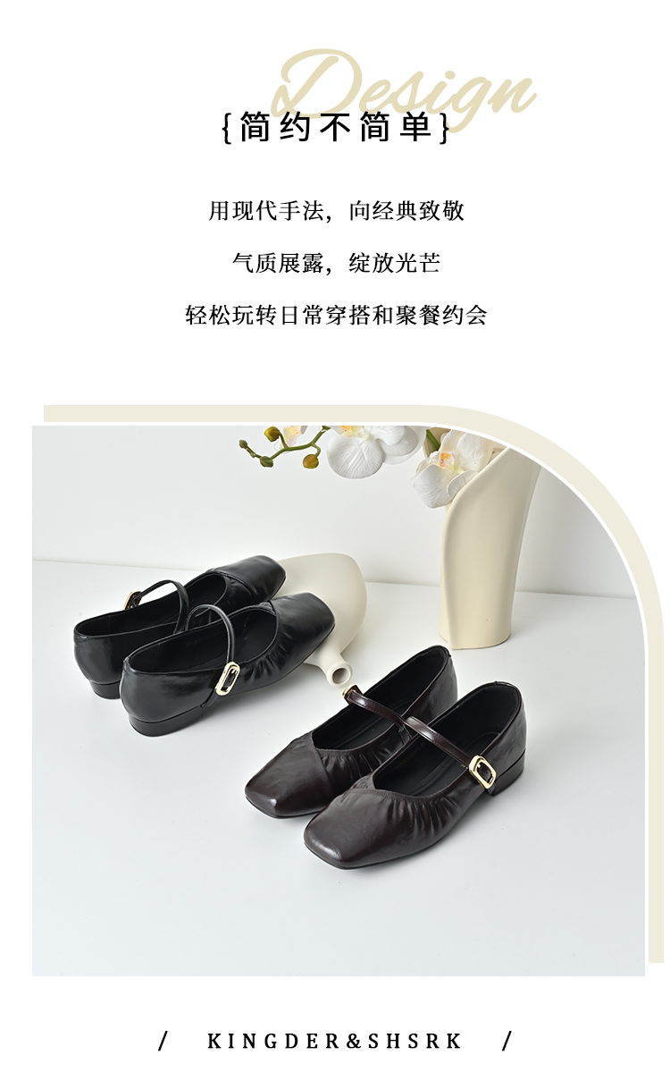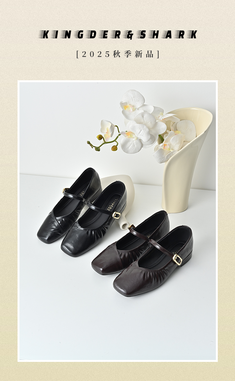 经典鲨2025秋季专柜新款复古方头平底一字带舒适通勤单鞋女KW178-537061