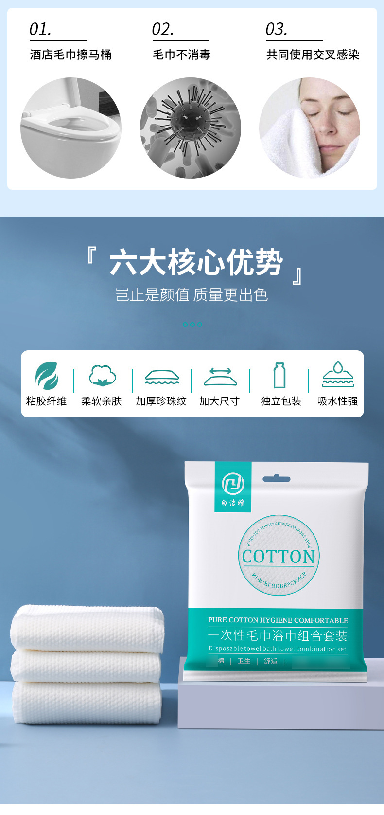 【9.9抢浴巾毛巾套装!洁净随身】亲肤透气 如羽毛般触感细腻柔软 加厚款一次性毛巾旅行用浴巾毛巾套装酒店加厚洗浴巾