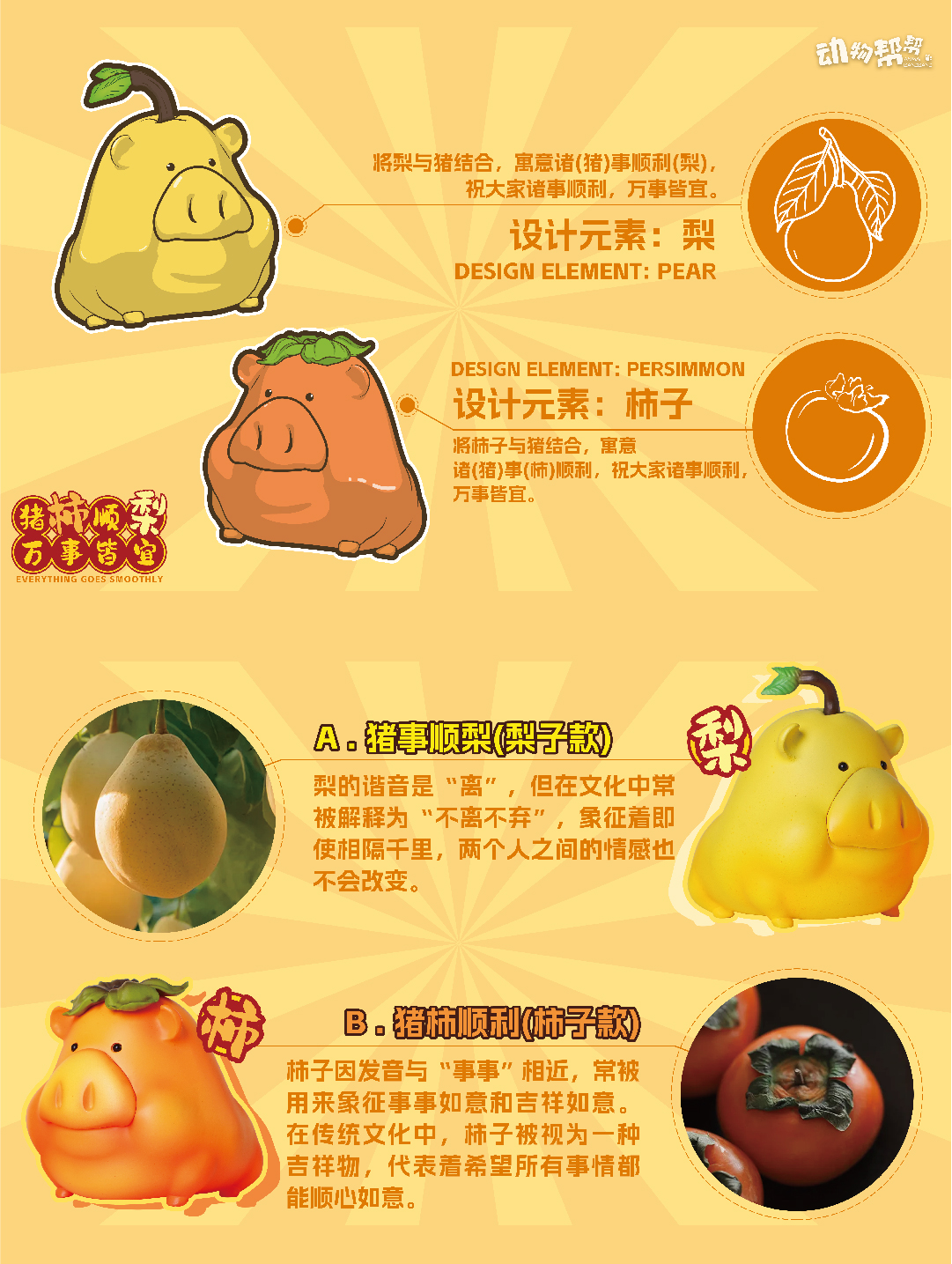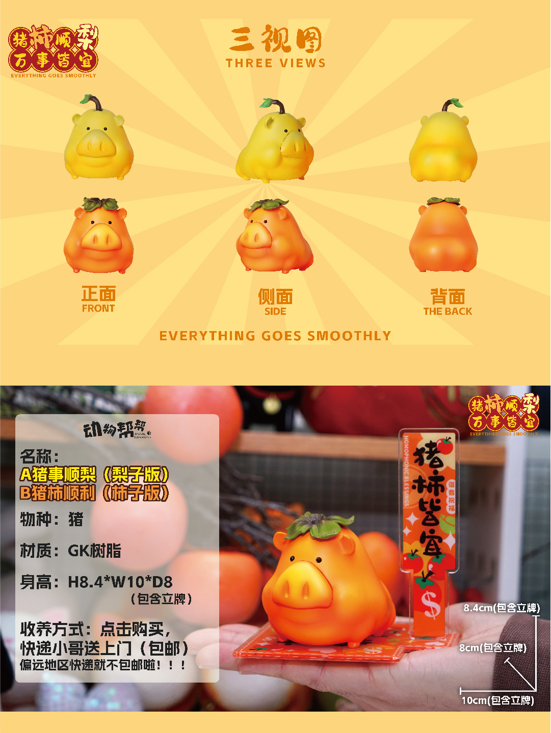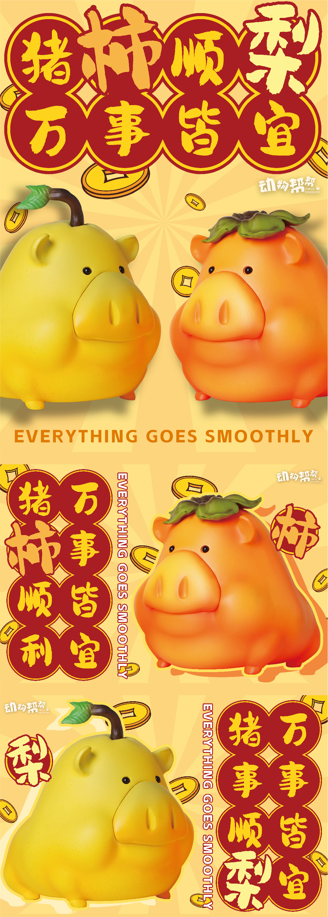 猪柿顺梨 模型手办 “诸事顺利”谐音梗潮玩 ★动物帮帮农场 官方正品【48小时发货】