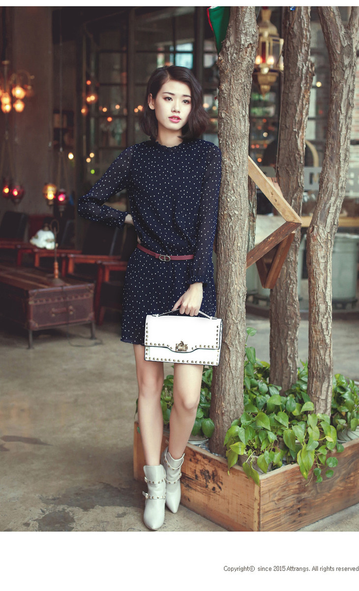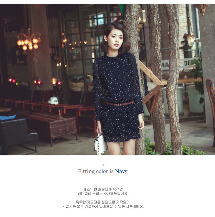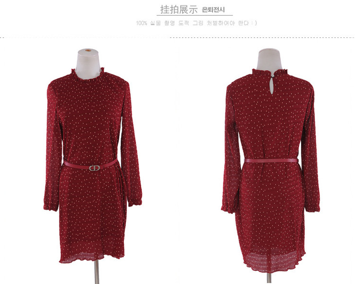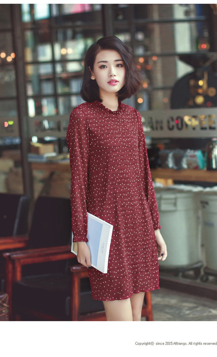 【服饰鞋包】秋装新款女韩版宽松长袖压皱波点雪纺连衣裙中裙