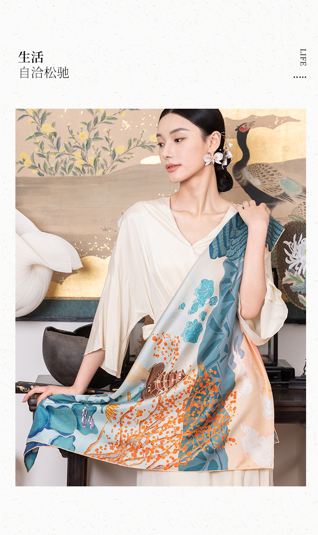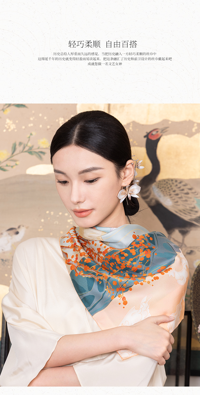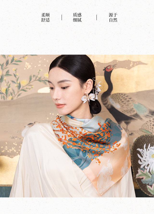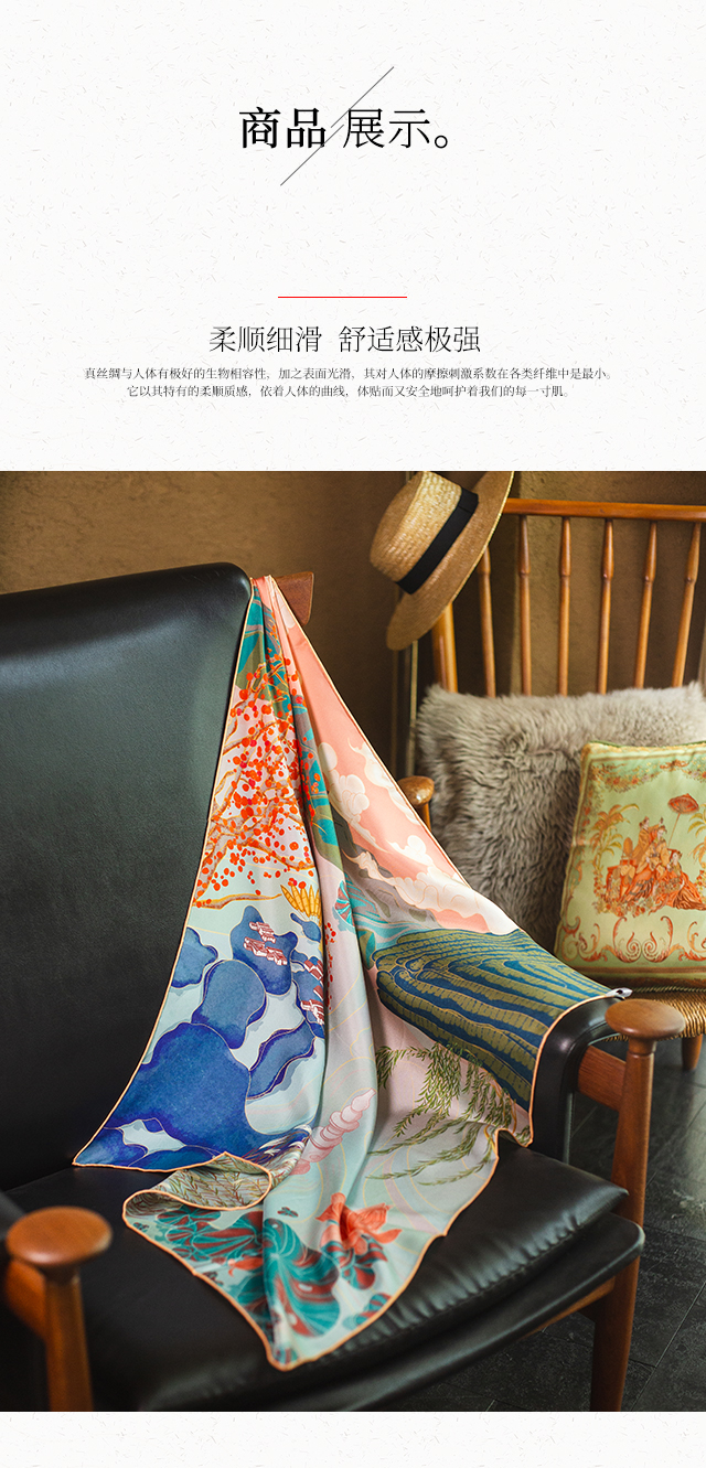 喜得宝文创丝巾《臻璨·双面喷斜纹大方巾》杭州丝绸100%桑蚕丝素绉缎