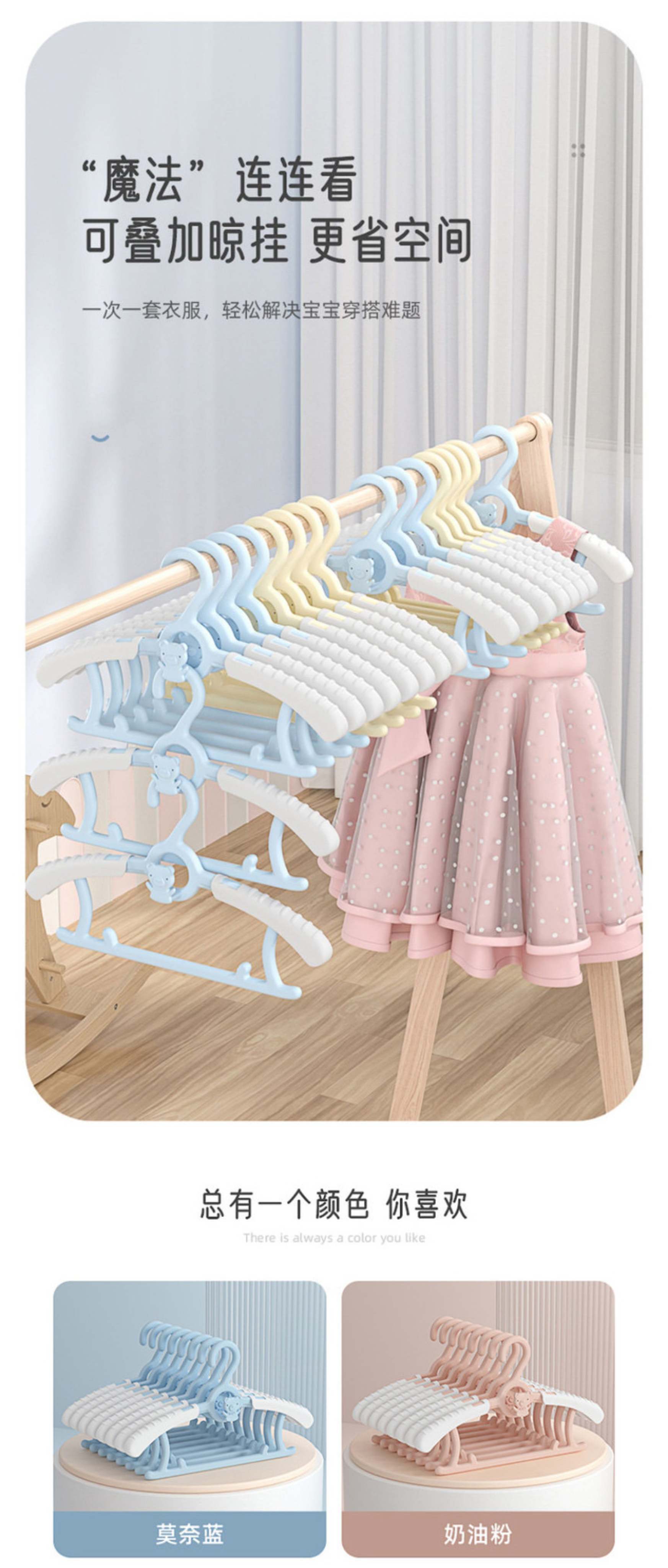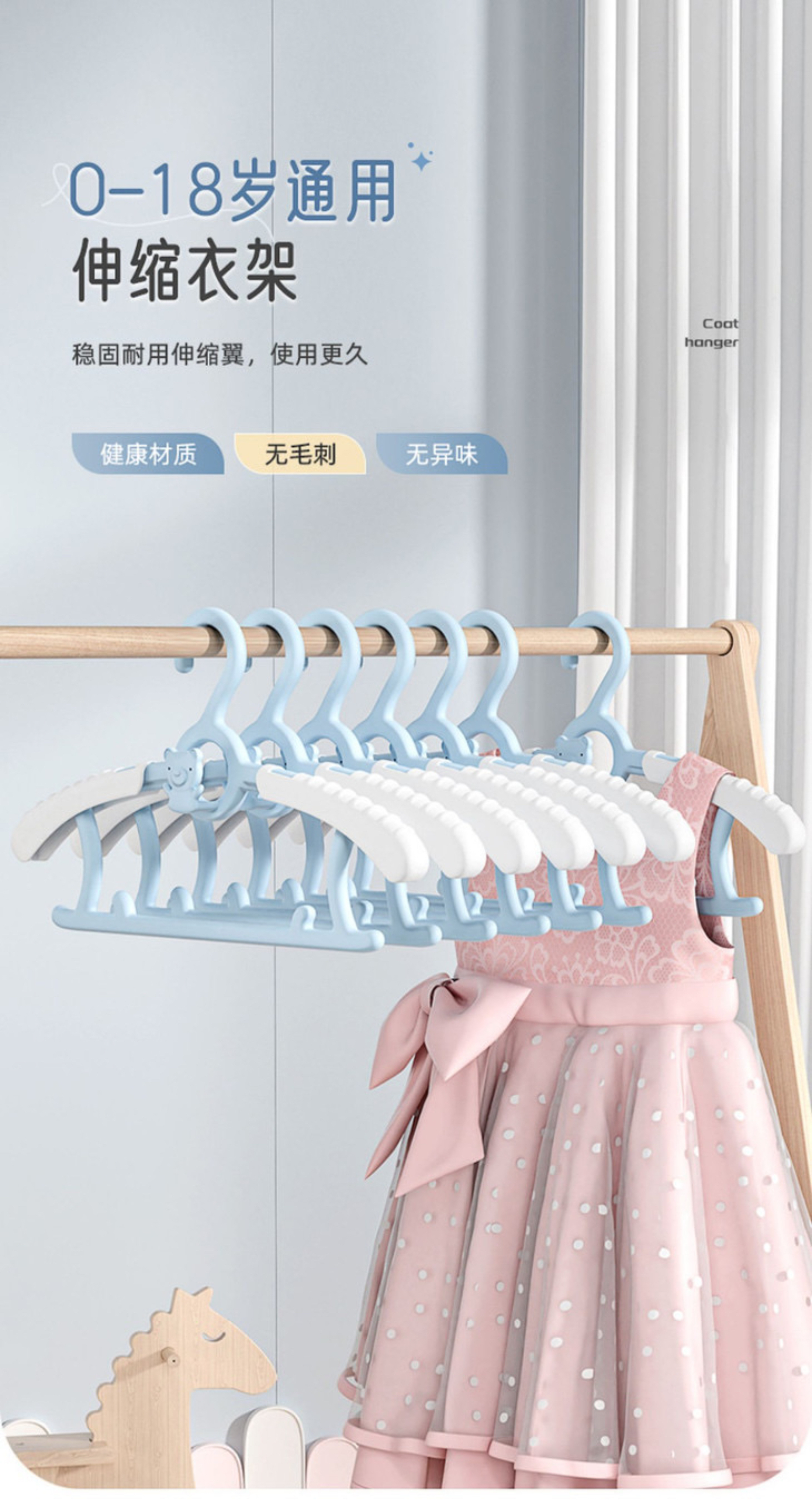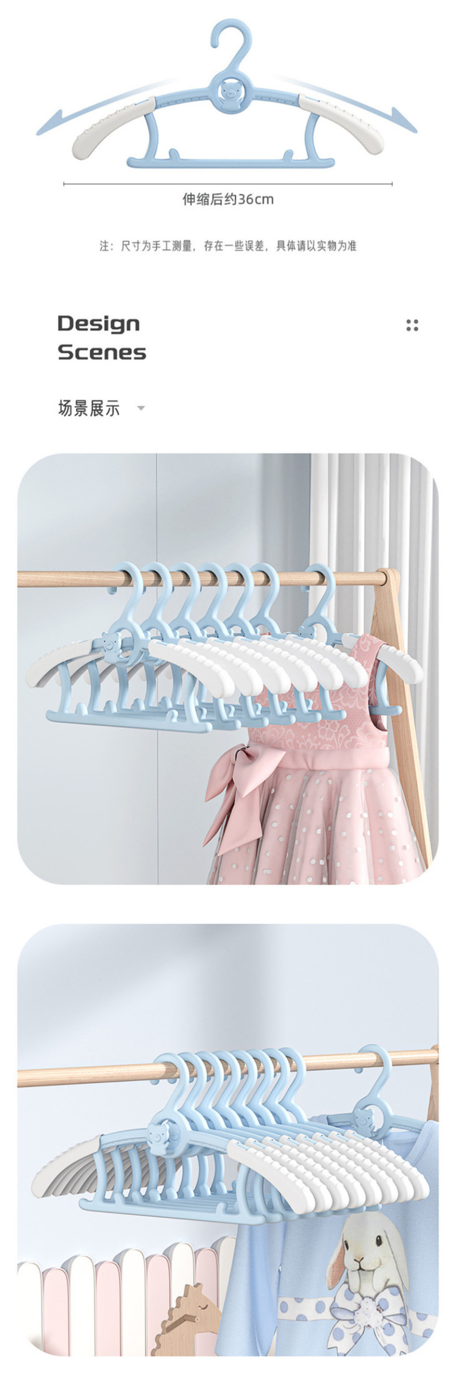 [屁侠推荐]多功能可伸缩儿童衣架 防滑无痕稳固耐用伸缩翼 新生儿宝宝专用衣服撑 30个装儿童衣架