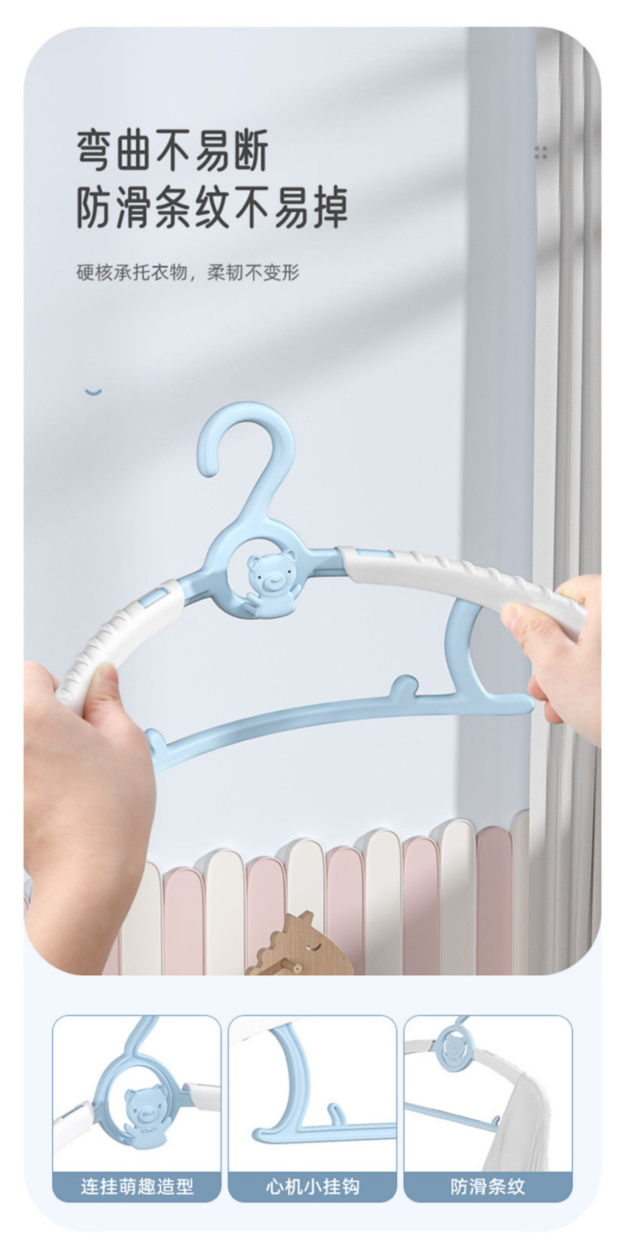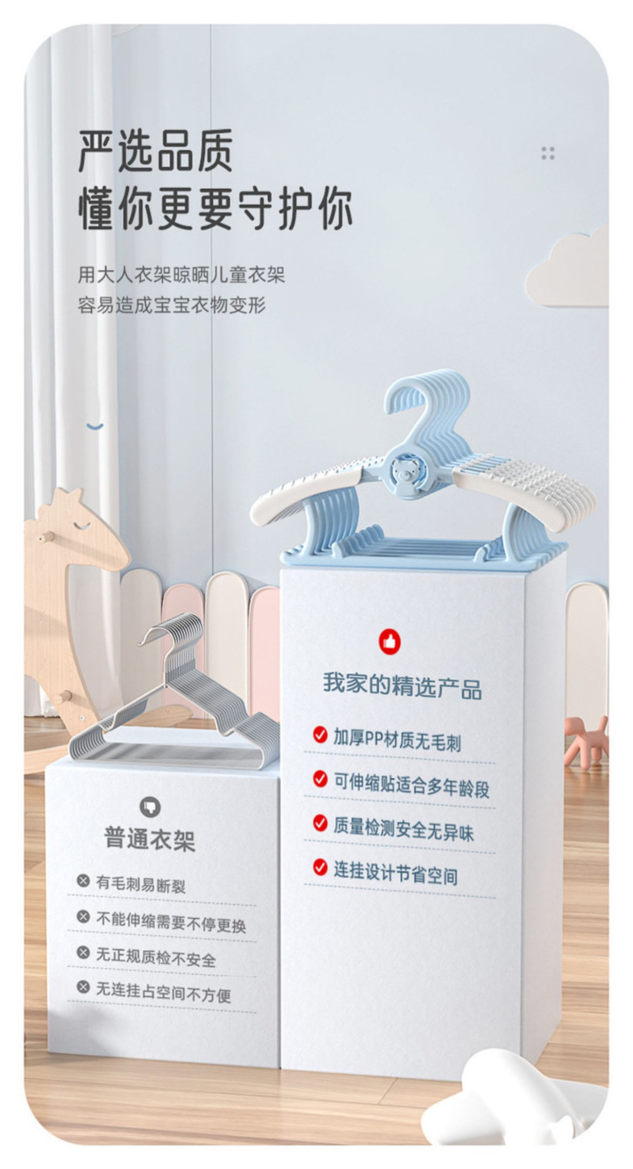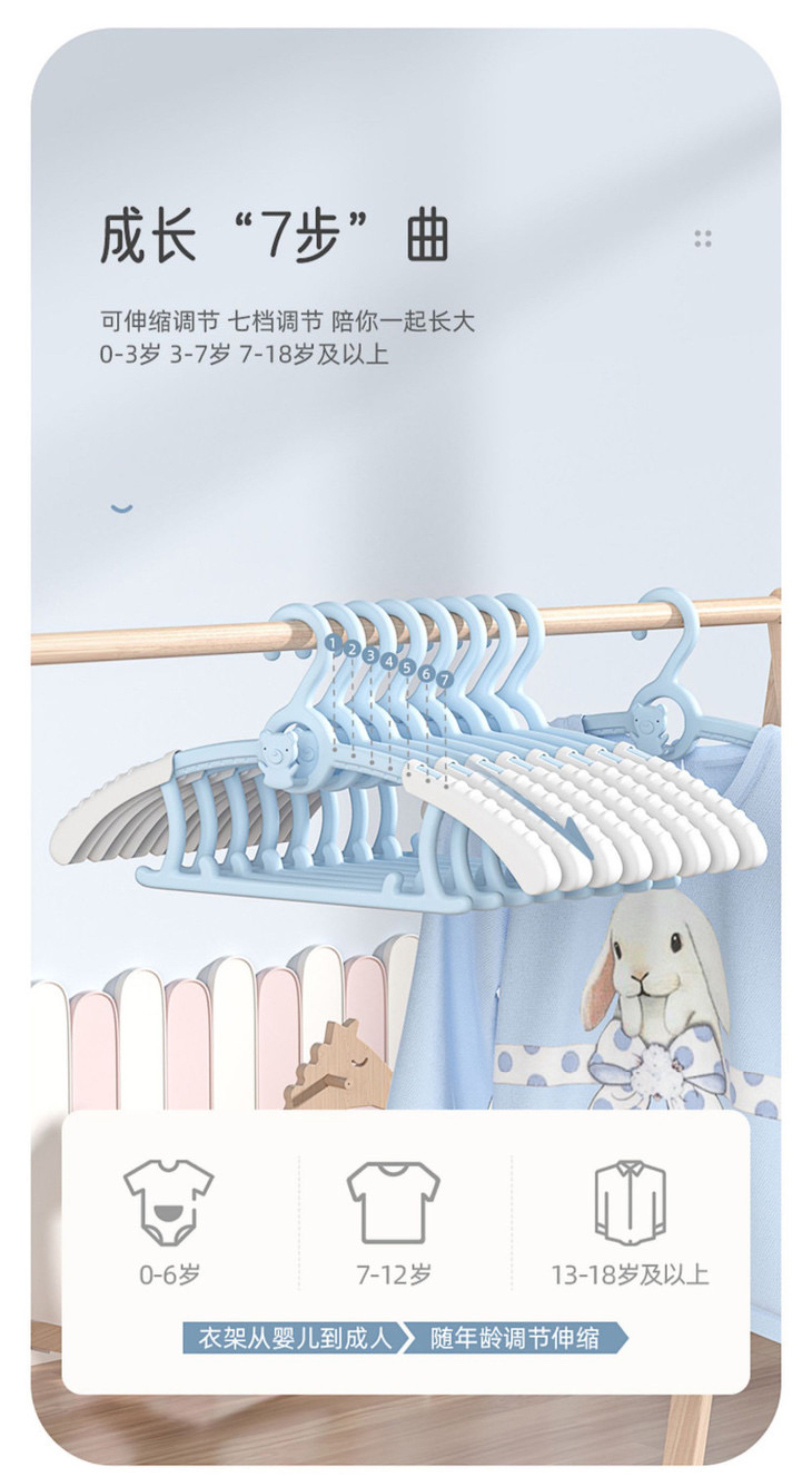 [屁侠推荐]多功能可伸缩儿童衣架 防滑无痕稳固耐用伸缩翼 新生儿宝宝专用衣服撑 30个装儿童衣架