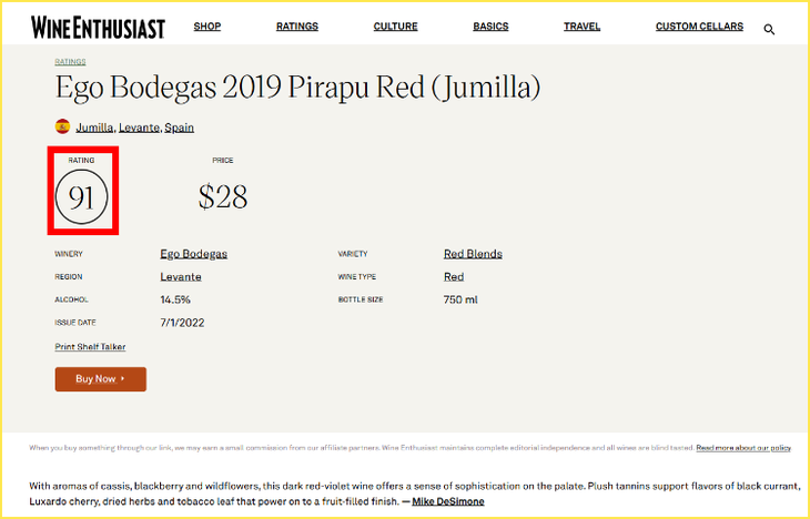 WE91高分&双金奖,西班牙胡米亚新锐名庄出品,国外均价约16美金(折合¥130+)。