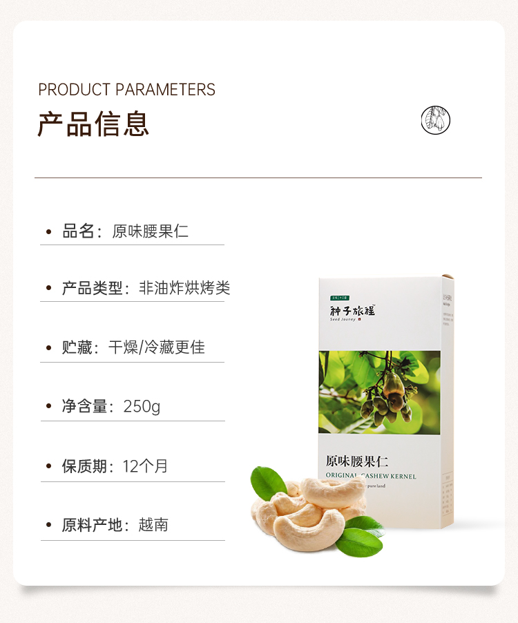 北纬纯净食品|38°越南进口原味腰果雨林原生腰果仁新鲜250g