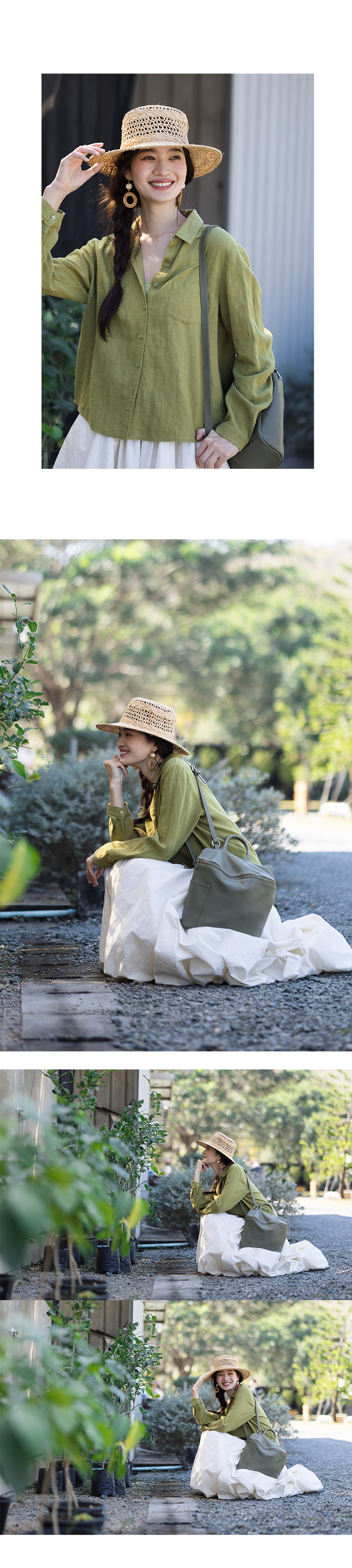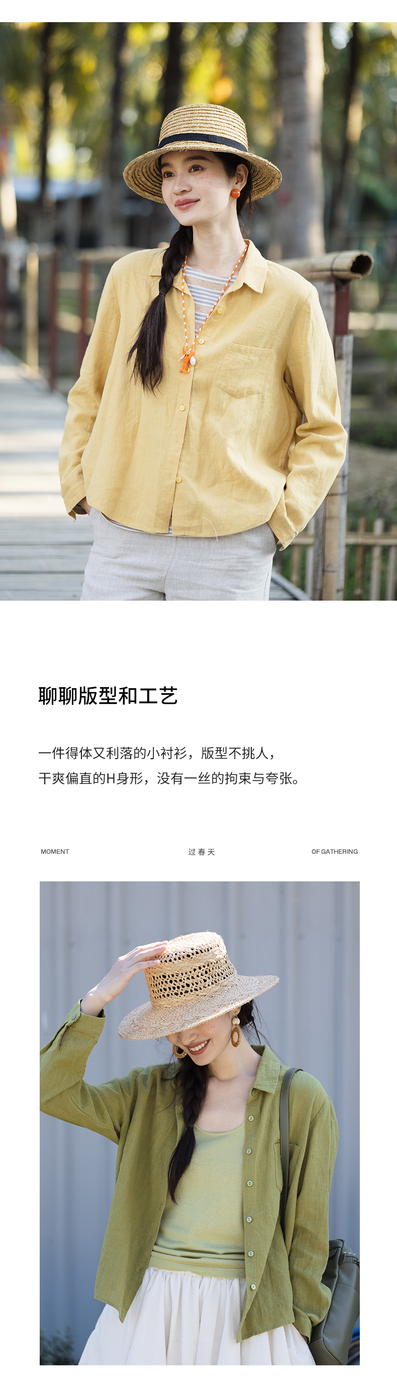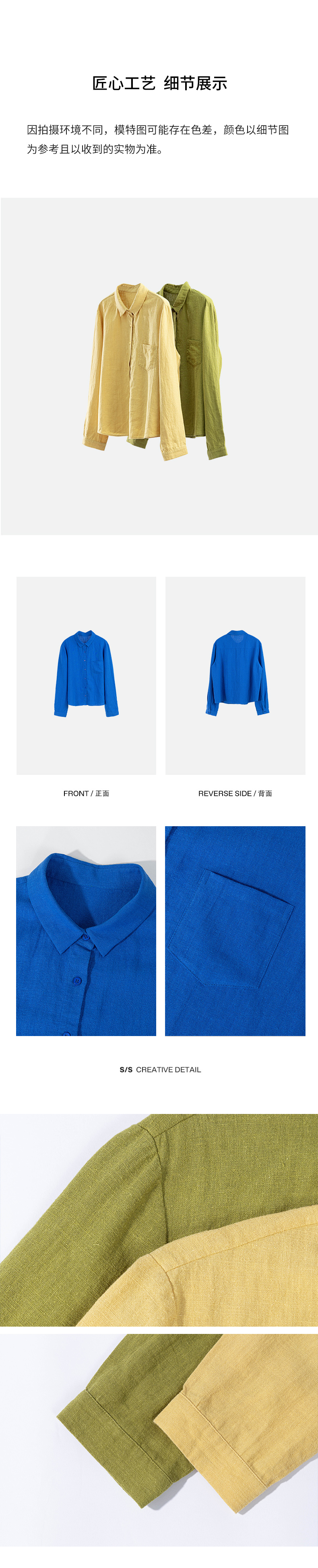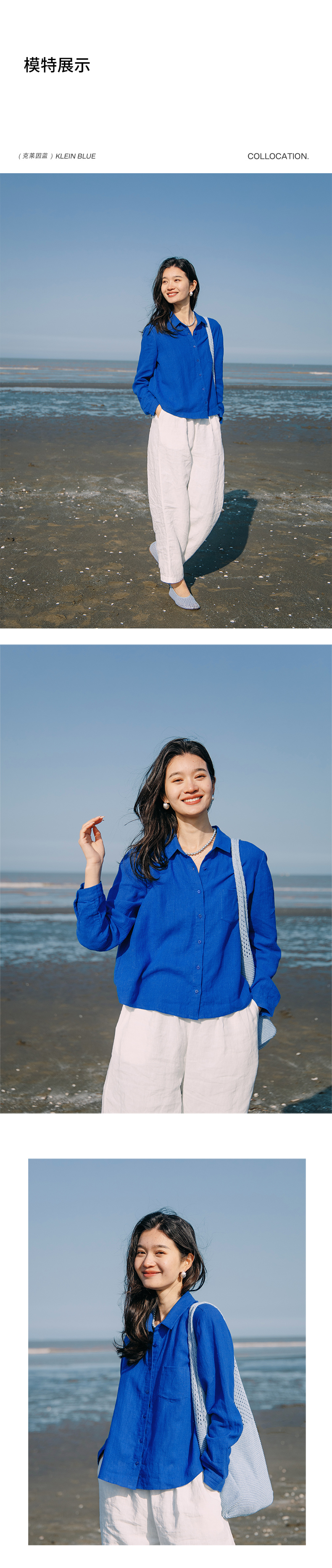 特绽放271朵/入蓝系列·纯苎麻显瘦正肩长袖衬衫克莱因蓝防晒上衣