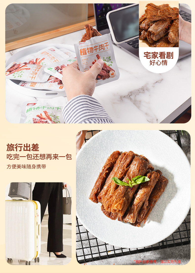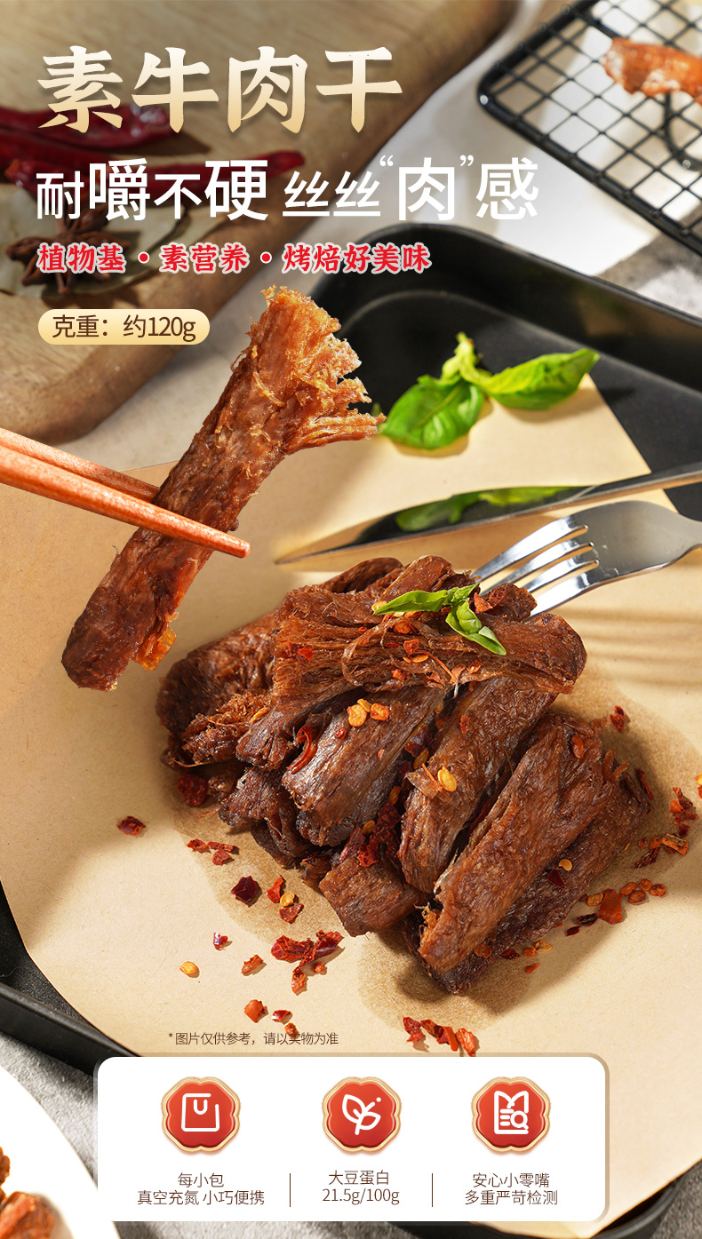 祖名人造牛肉干素牛肉素肉零食豆干小吃豆腐干手撕120g*3袋
