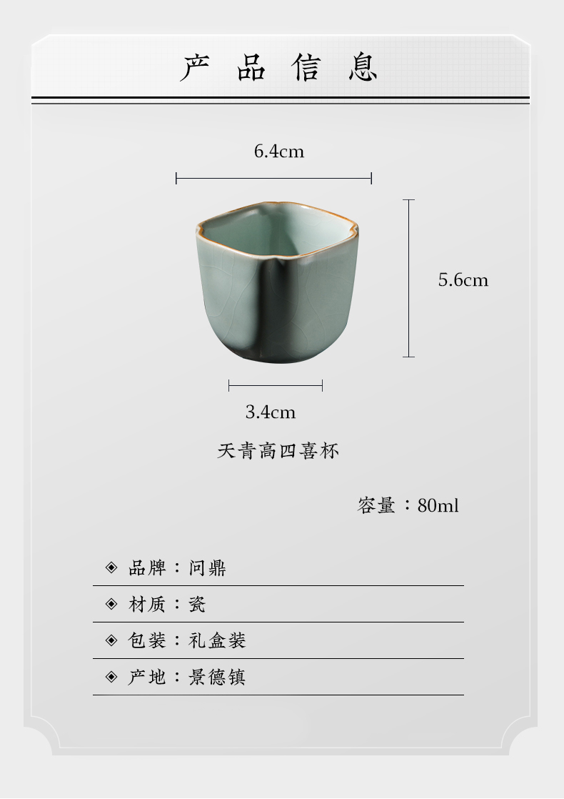 问鼎汝瓷鼎峰系列天青老款高四喜杯
