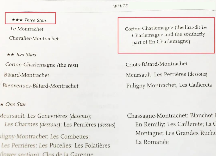科通-查理曼:勃艮第 3 星特级名园,干白香气华丽、口感饱满丰腴;