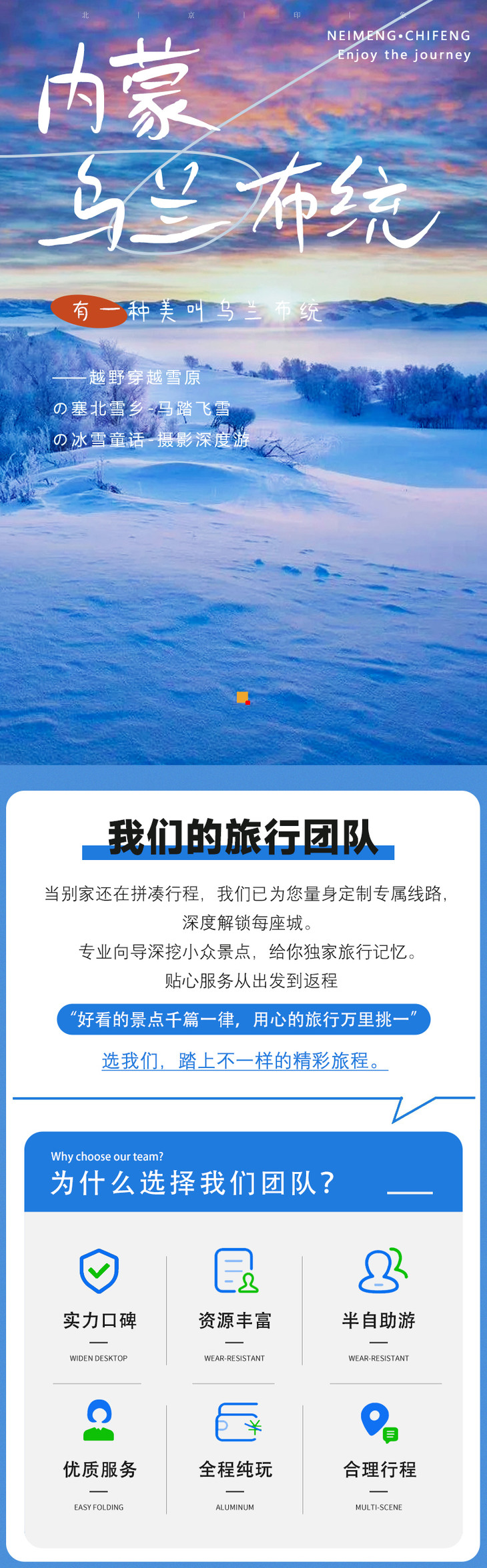 初到乌兰布统景区,绝美的雪域美景尽收眼底,让你终生难忘,哪里景色美我们就停留在哪里,雪地撒欢吧,别忘了留下你在雪野上的第一张照片,边走边拍行摄于无尽的内雪域高原。