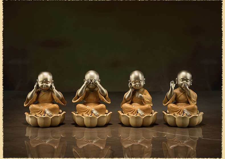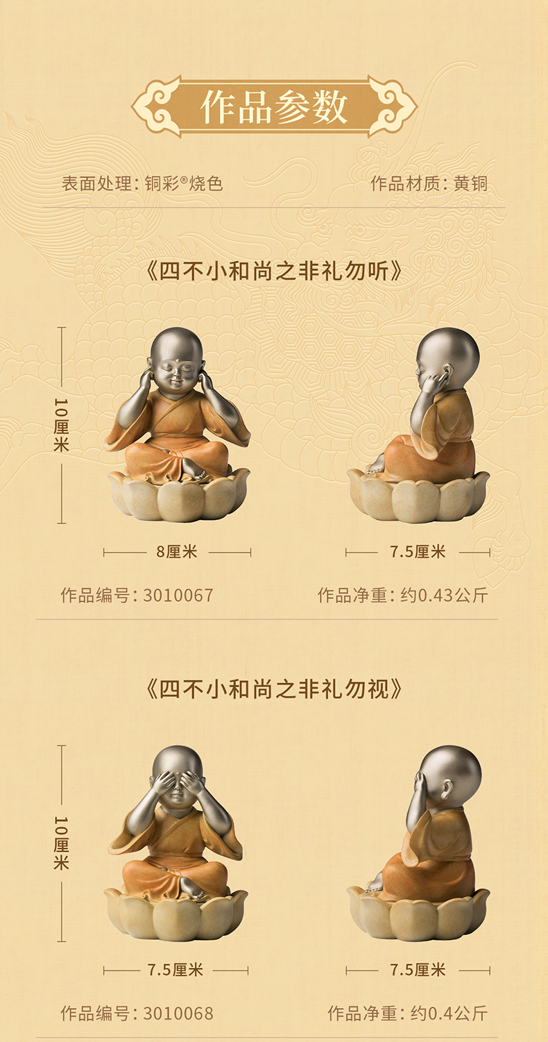 铜师傅《四不小和尚》客厅工位佛像铜摆件 家居装饰工艺品