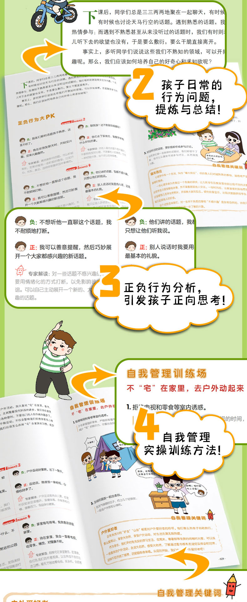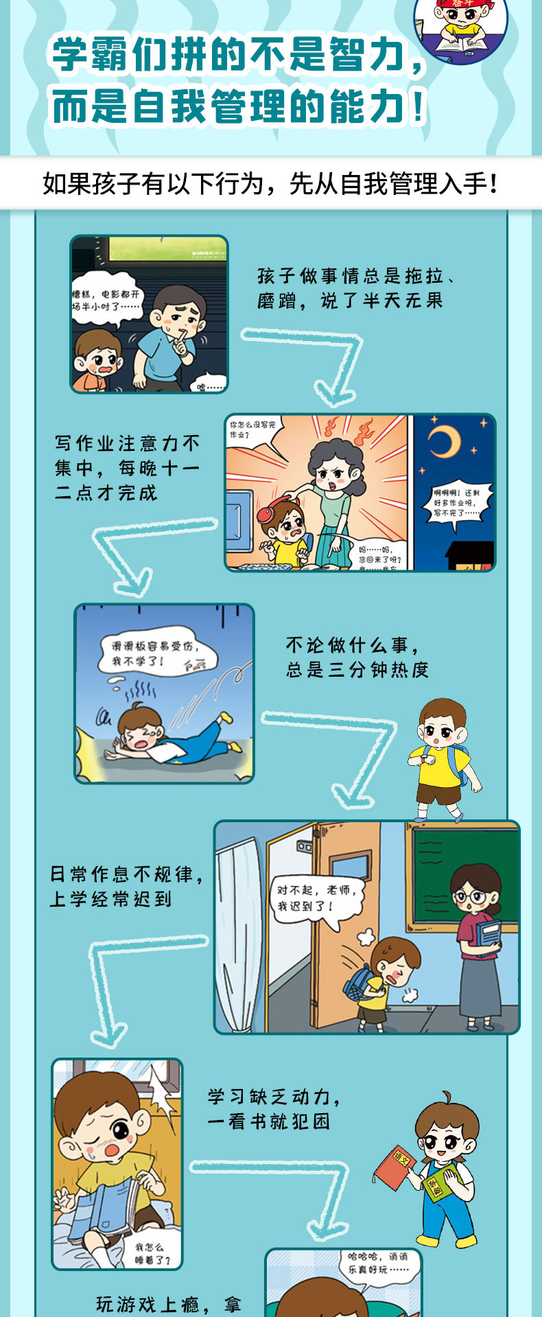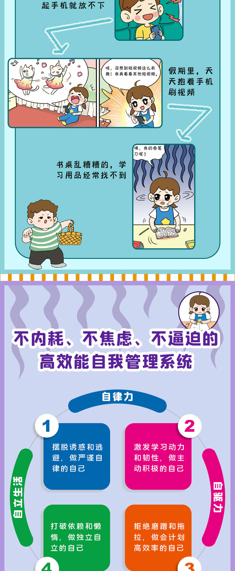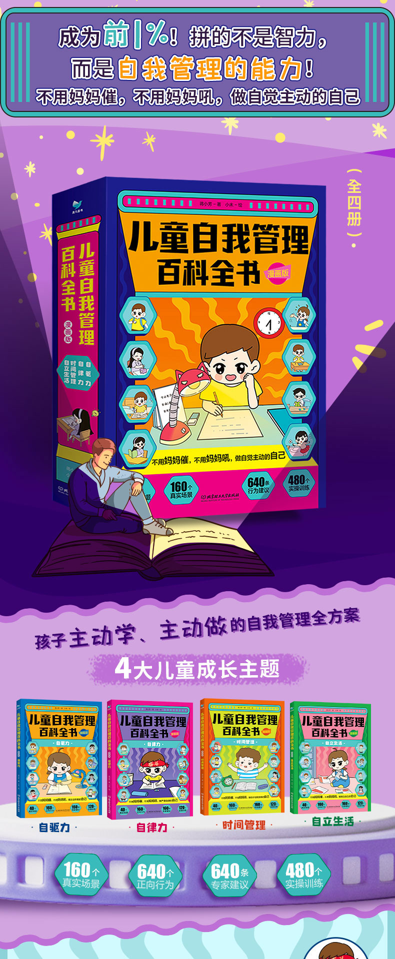 《儿童自我管理百科全书·漫画版(全4册)》如果你家孩子有磨蹭、拖延、三分钟热度、缺乏专注力等问题,千万不能错过!