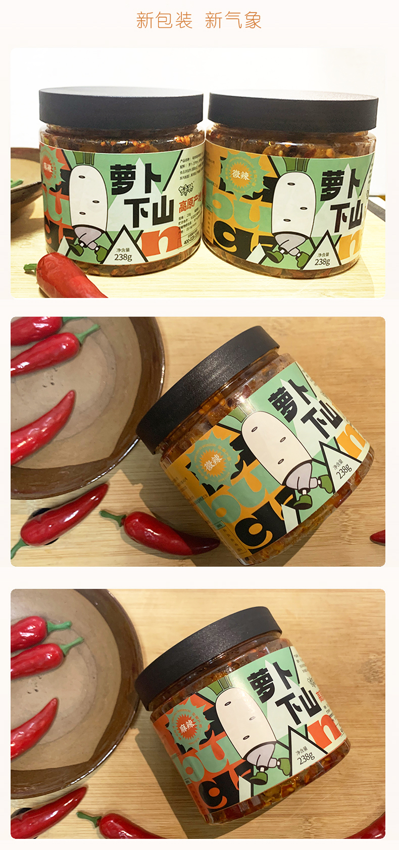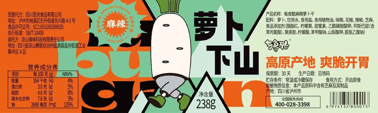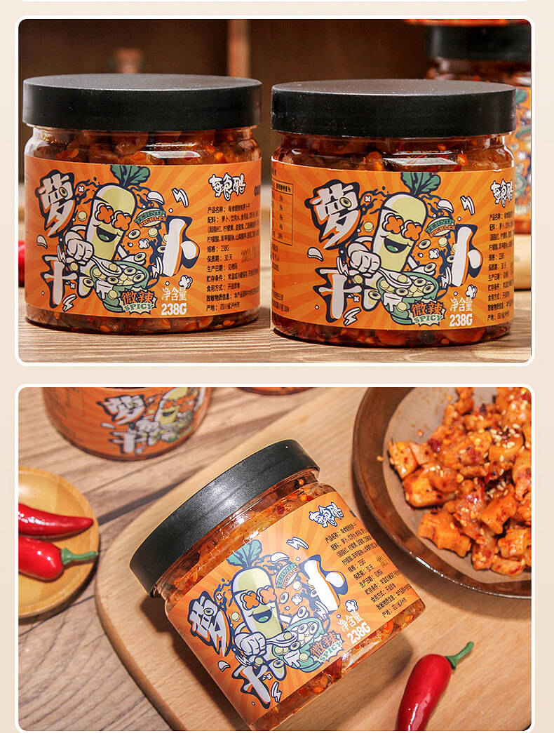 每食酷麻辣萝卜干下饭菜脆萝卜香辣脆爽开胃咸菜238g*2瓶装