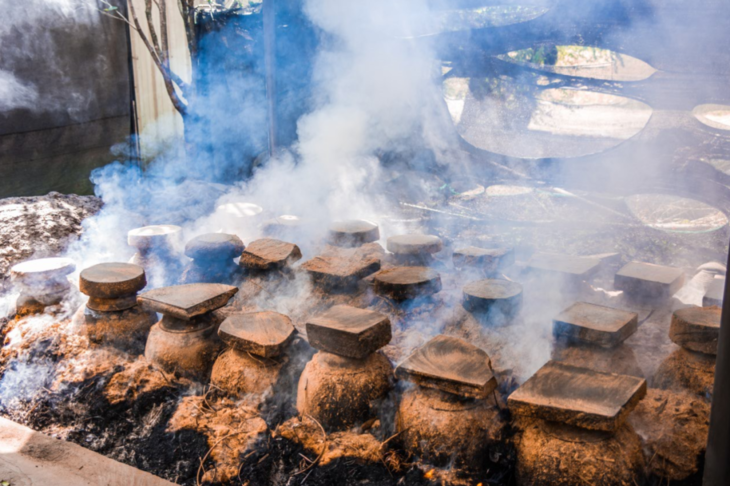 然后,把娘酒装陶罐后,周围堆满谷壳、稻草。