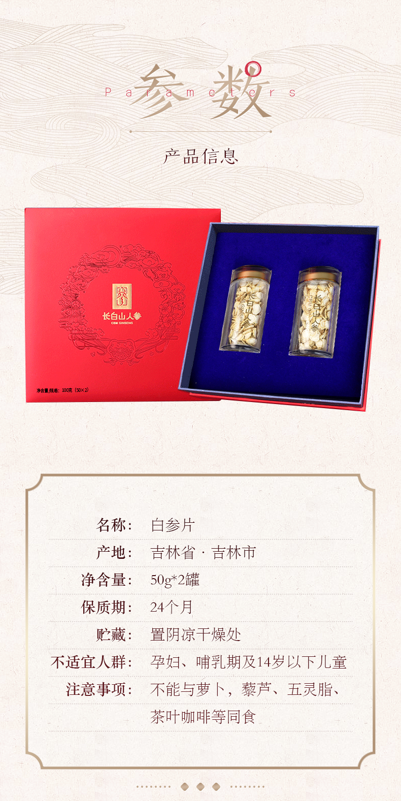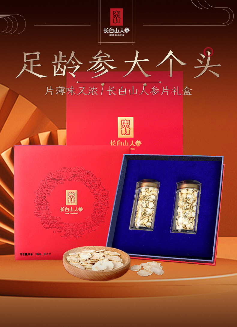 【长白山人参】白参片1.0cm罐装人参片礼盒
