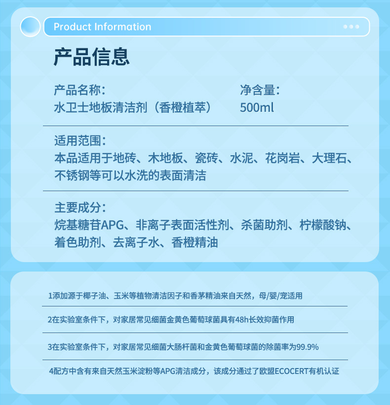 水卫仕洗地机专用清洁液地板清洁剂拖扫瓷砖木地板清洗剂杀菌家用