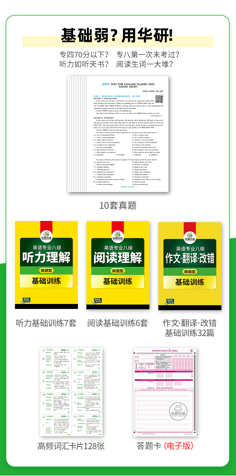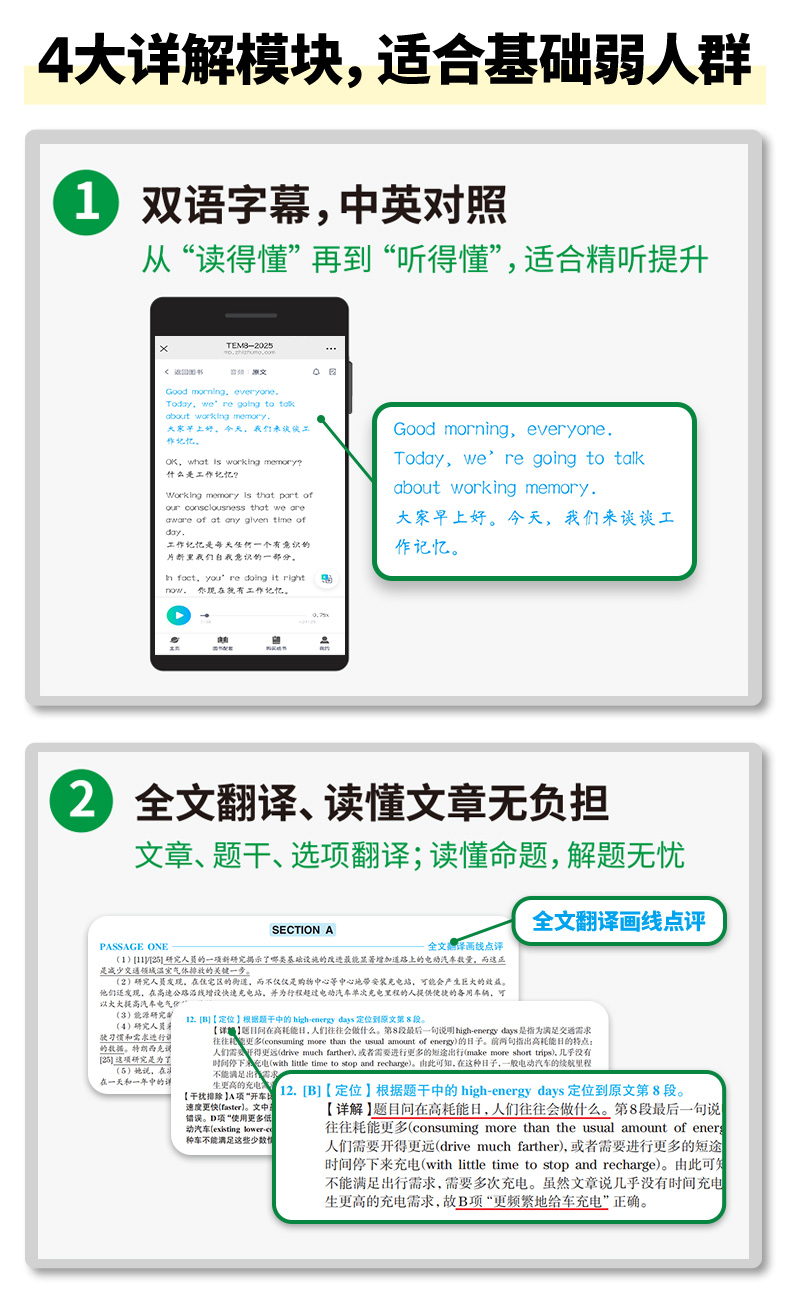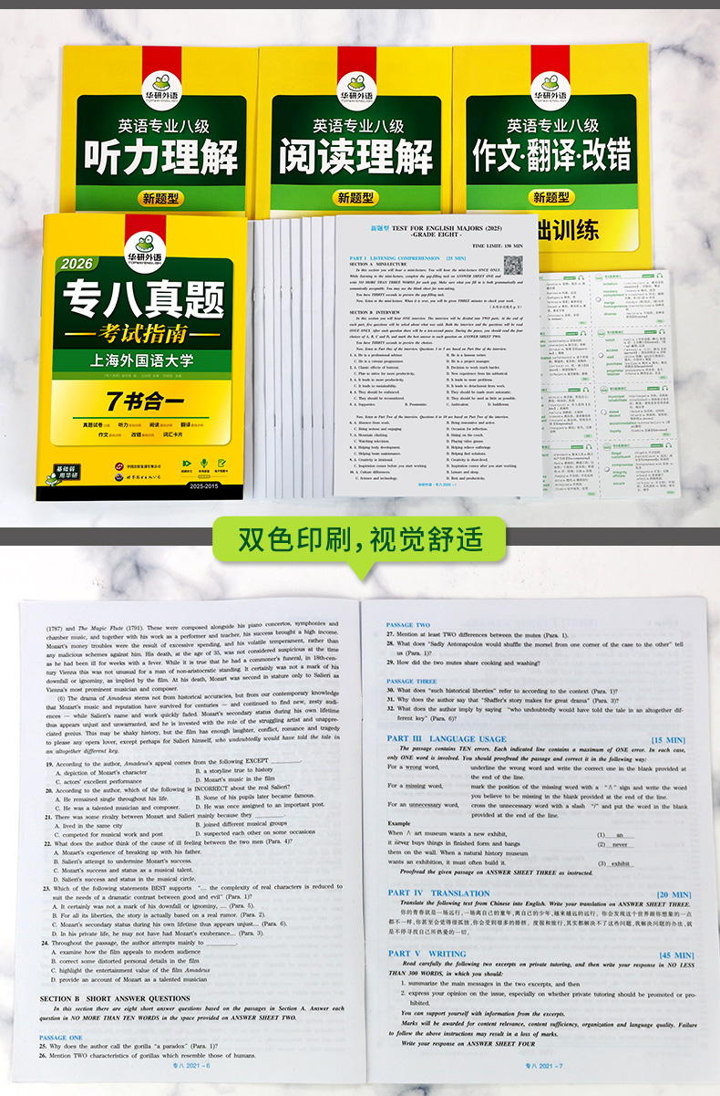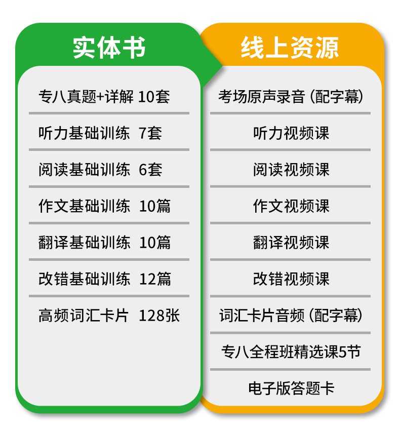 4. 附专八精选课程,涵盖所有题型,全方位指导考试,封底扫码获取;