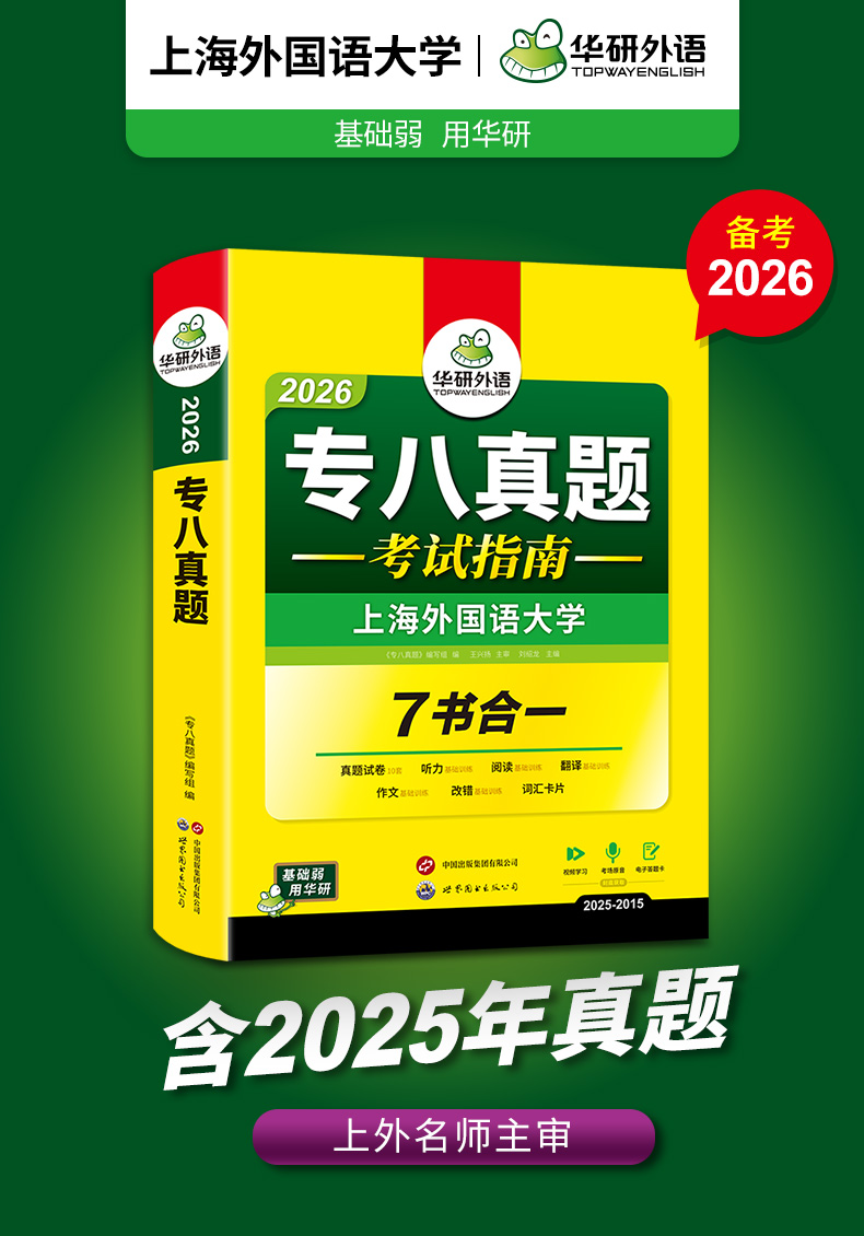 华研外语 备考2026 专八真题指南 英语专业八级历年真题试卷词汇单词阅读理解听力改错翻译写作范文专项训练全套书资料tem8预测模拟语法