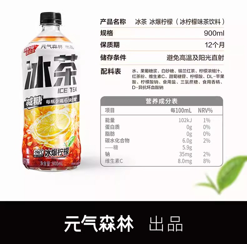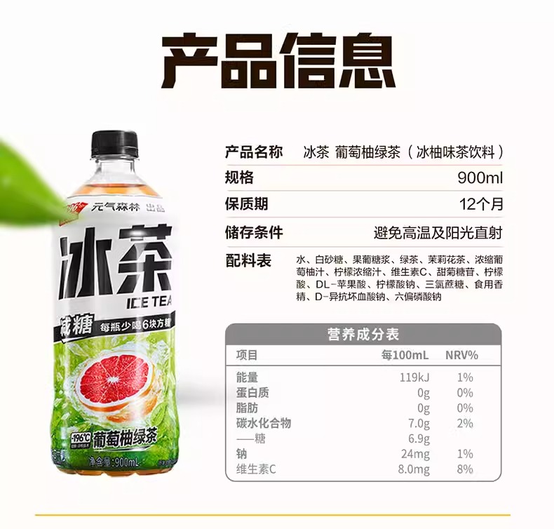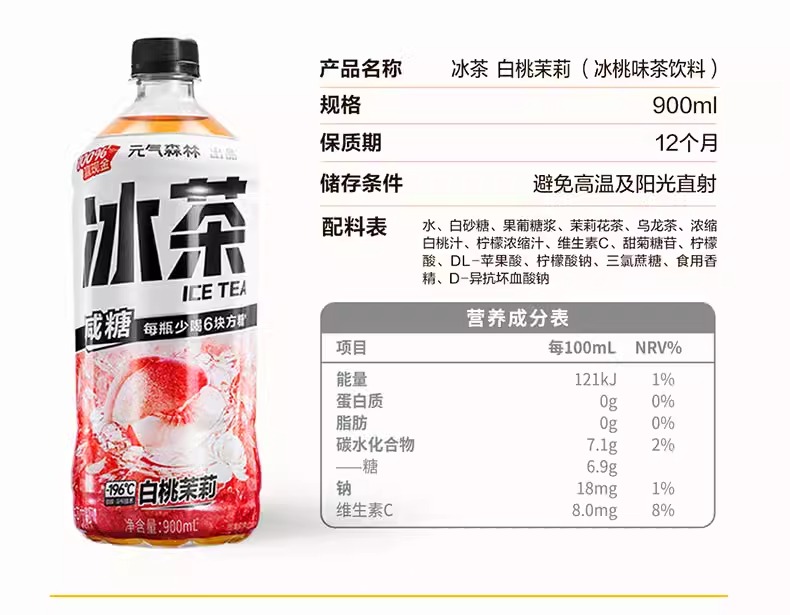 元气森林 大冰茶畅饮装白桃茉莉900ml果茶饮料