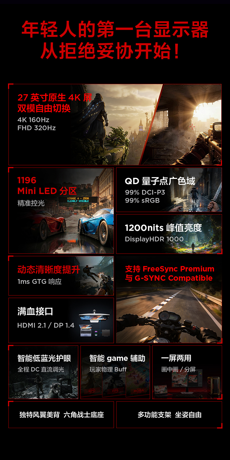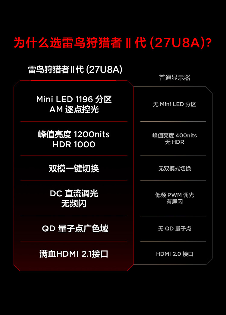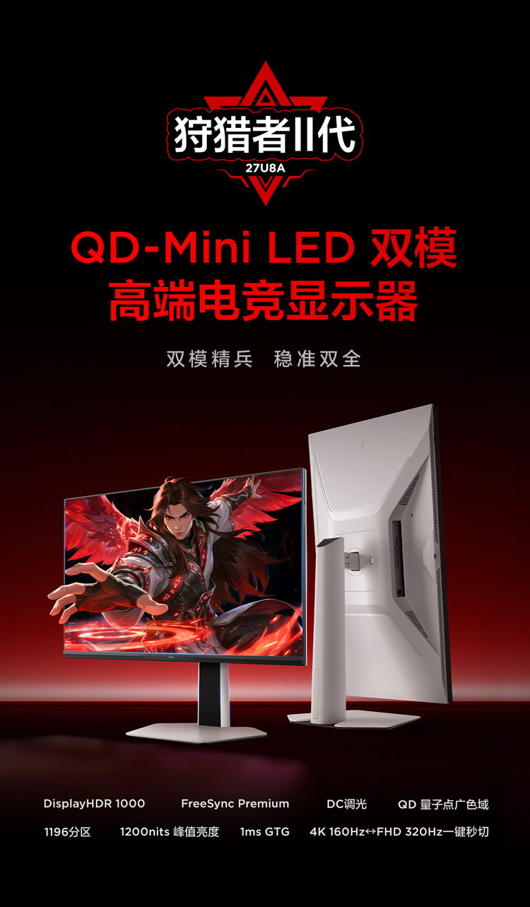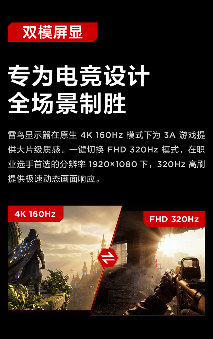 【FFALCON雷鸟】雷鸟27英寸4K160Hz双模320Hz电竞显示屏 DC调光护眼 1196分区 MiniLED电脑显示器U8A狩猎者二代 27U8A