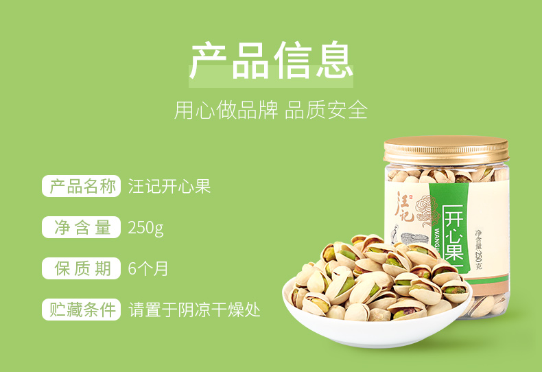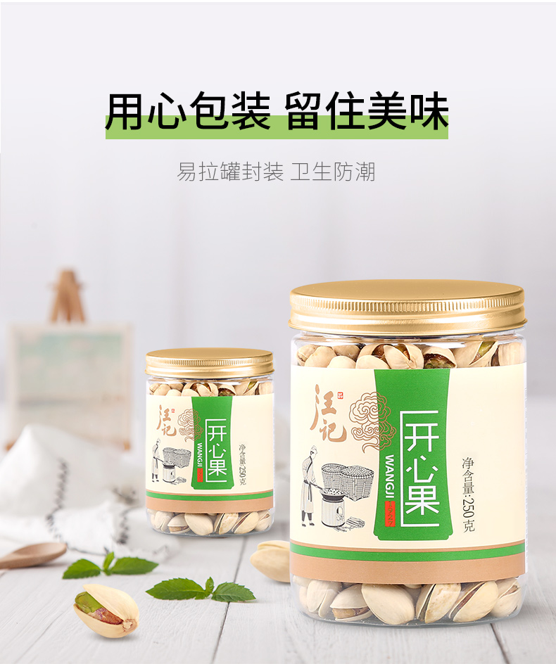 汪记原香味开心果自然开口无漂白粒大干果休闲小零食罐装净重250g