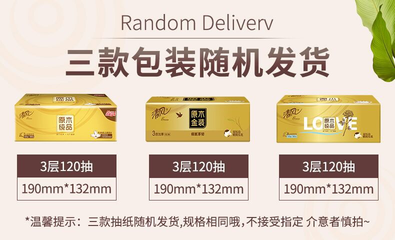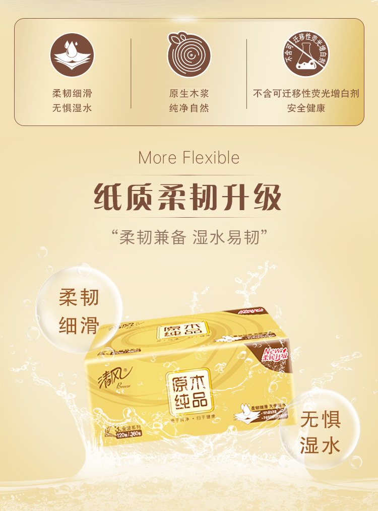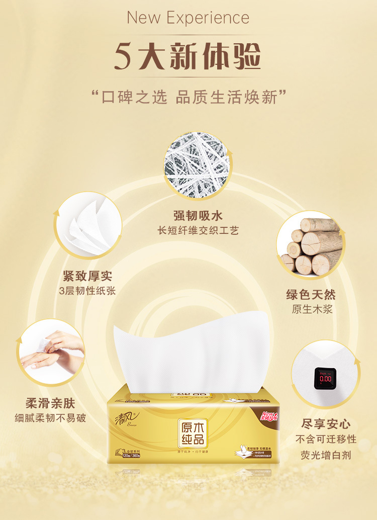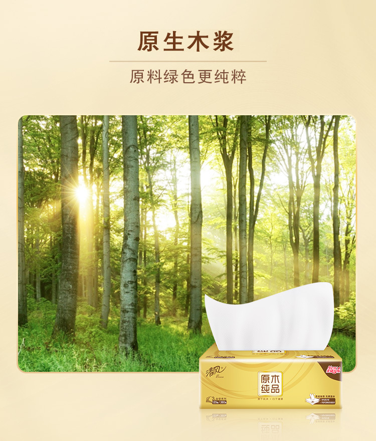 清风抽纸原木纯品 6包一提 600抽3层卫生纸纸抽餐巾纸