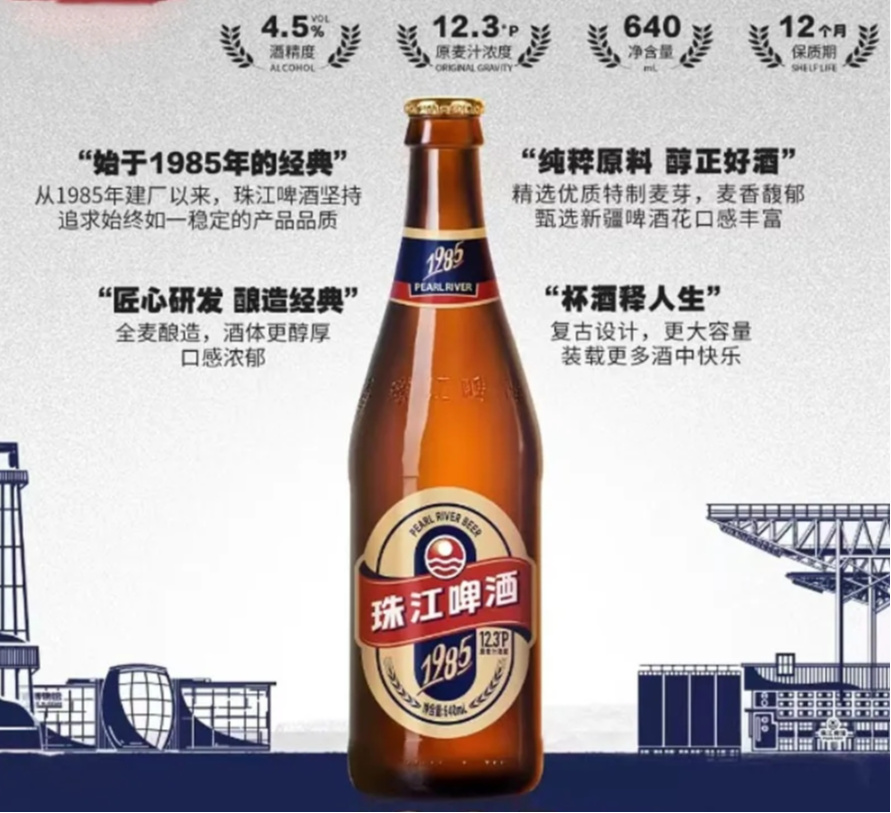 珠江啤酒1985 12.3°P珠江啤酒 640ml/瓶