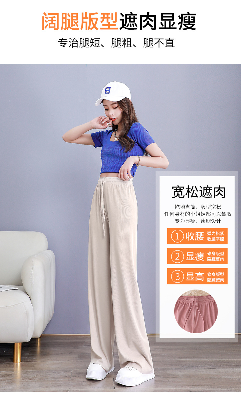 【限时特价!夏季爆款巨显瘦!】冰丝阔腿裤女夏季薄款高腰垂坠感学生休闲裤子显瘦宽松窄版直筒裤