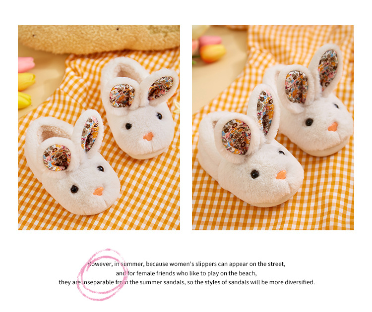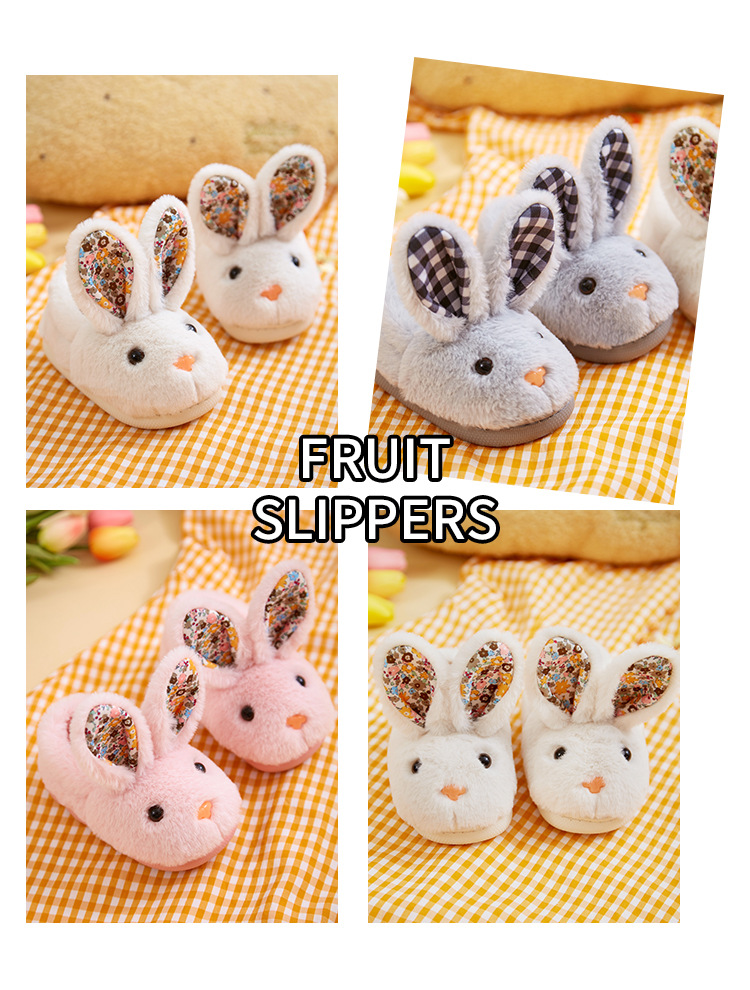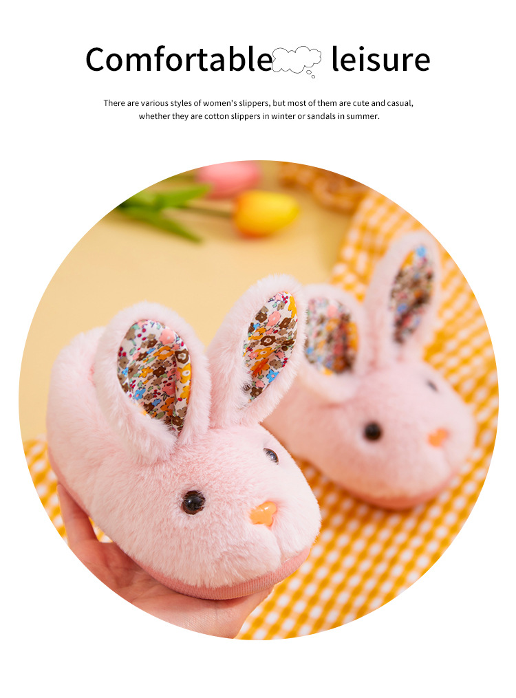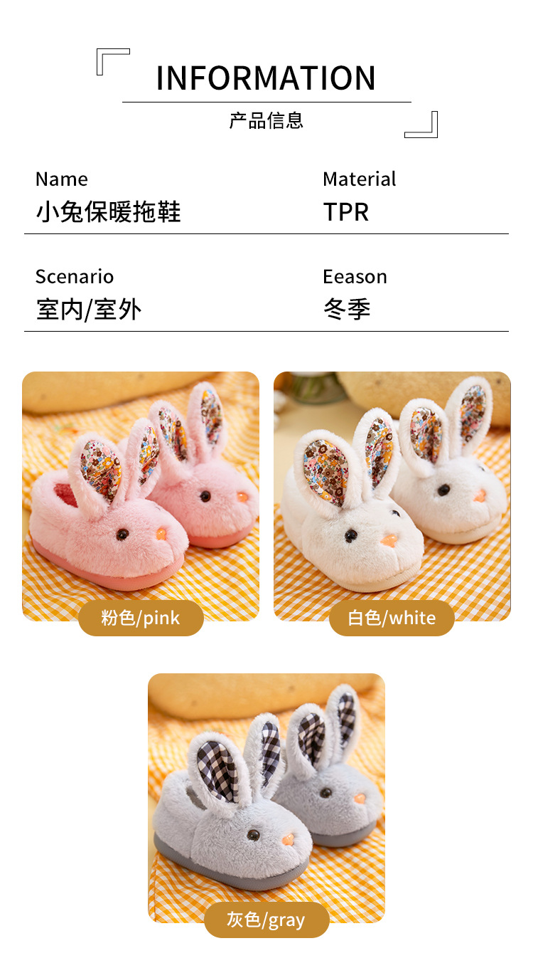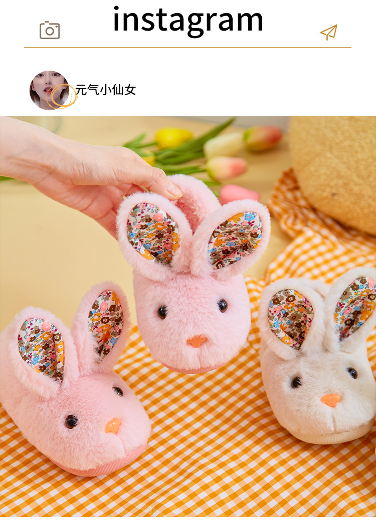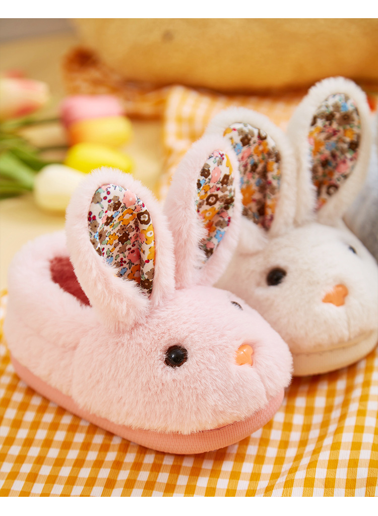 【可爱卡通小兔子棉拖鞋】儿童秋冬季女童男童宝宝包跟小孩棉鞋保暖家居室内毛毛拖鞋