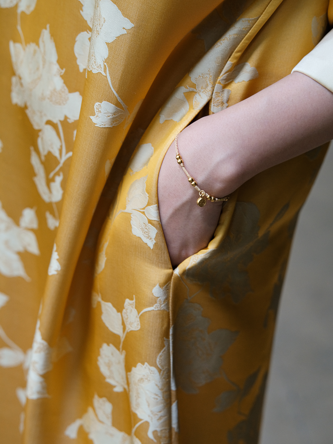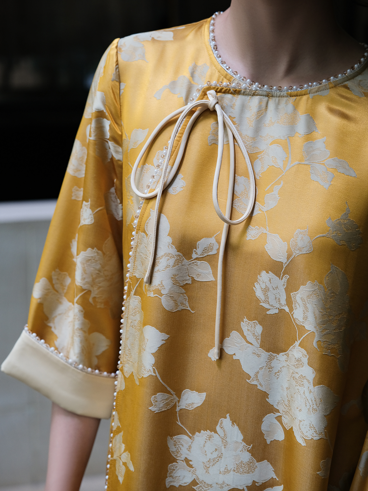 盛唐婧 |折枝玫瑰真丝缎提花钉珠连衣裙