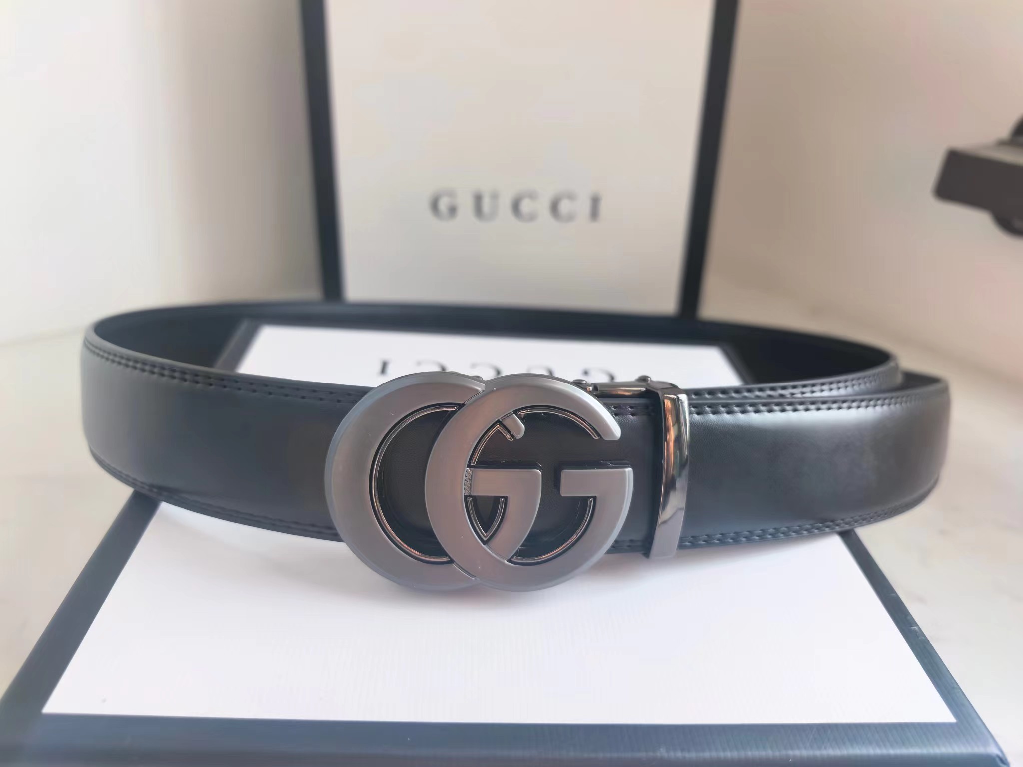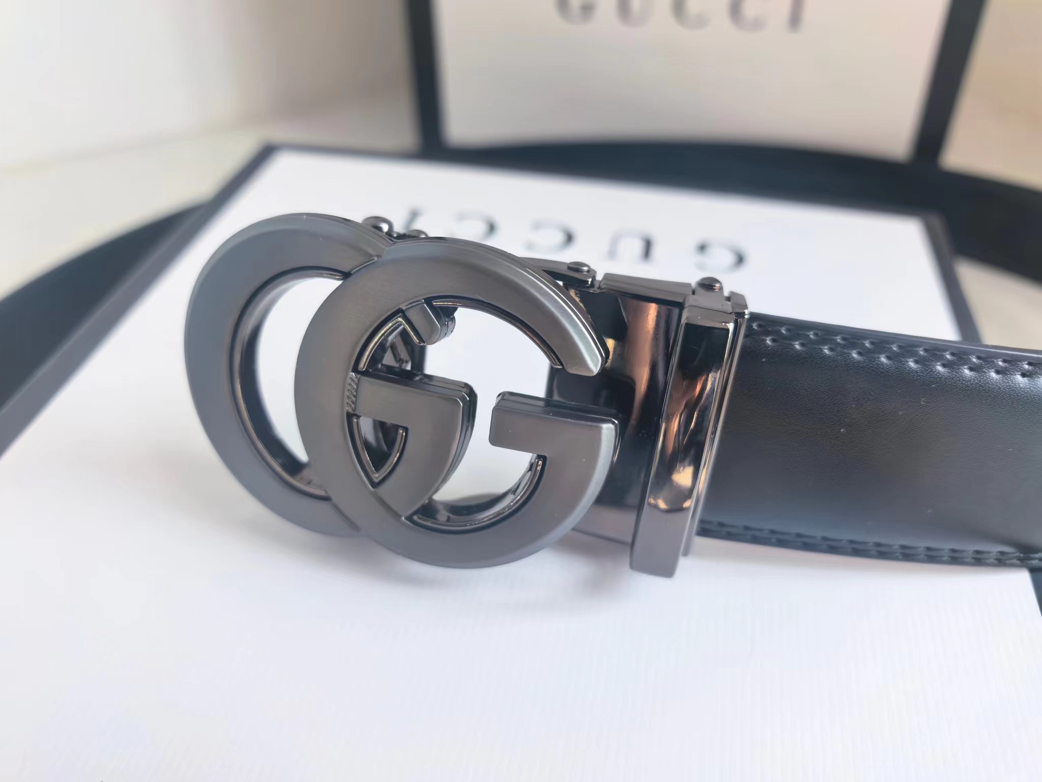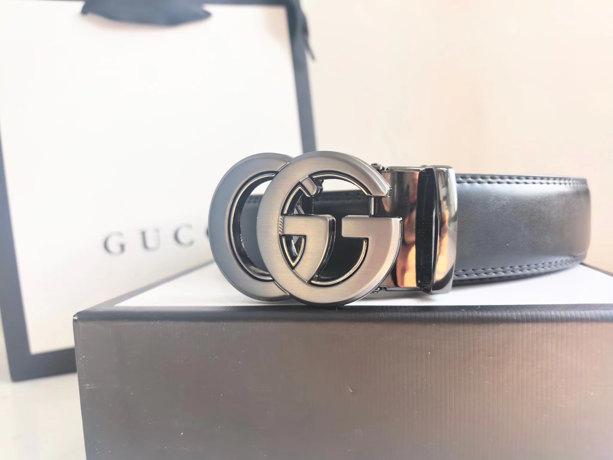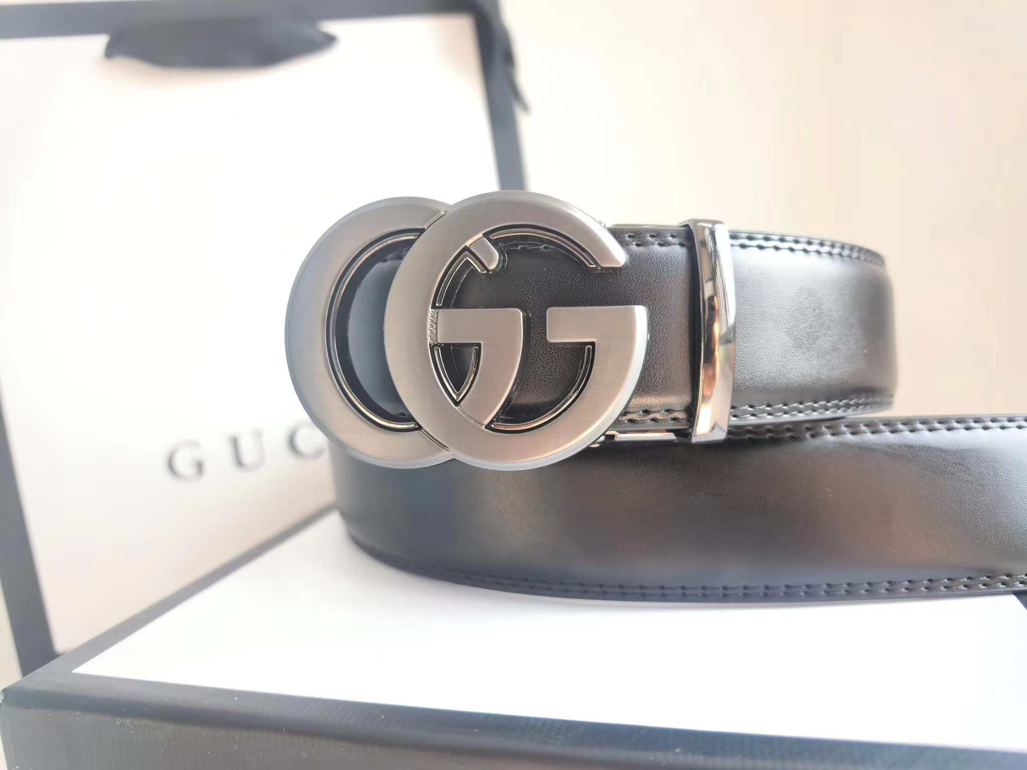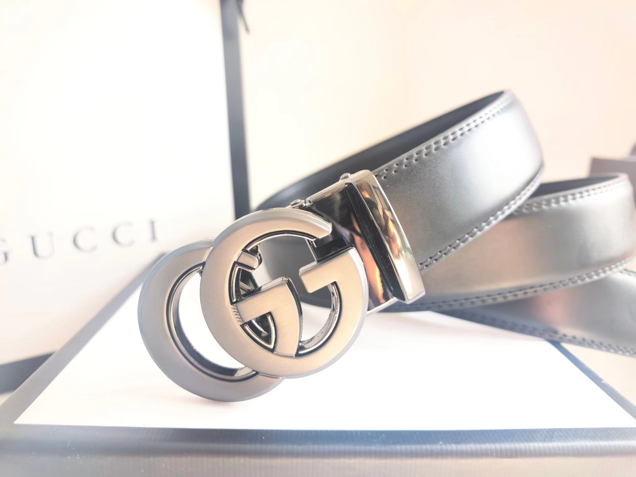 自动扣皮带 双G扣头百搭款 特别有男人味 非常休闲 好看 它独特的轻she气质 以及休闲的款式设计 真的非常的百搭 且硬朗 可工装 可休闲