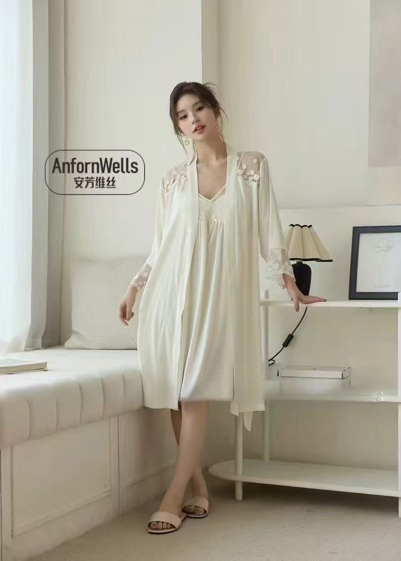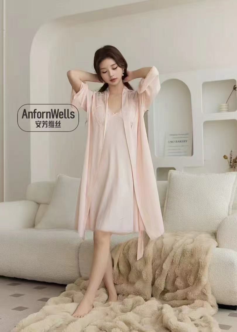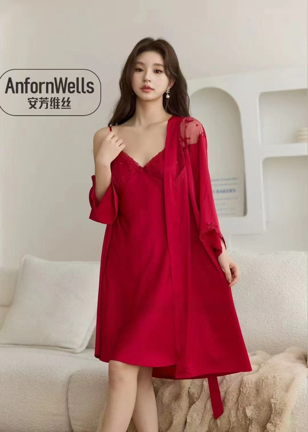 绸缎刺绣两件吊带袍轻奢高级睡衣1415120