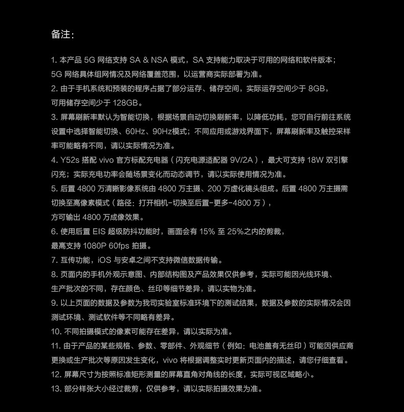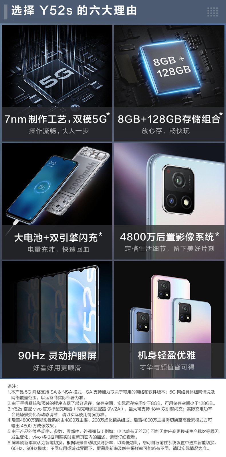 【vivo】*vivo Y52s 新款5G全网通智能手机 5000毫安 天玑720