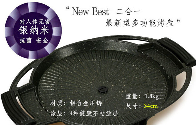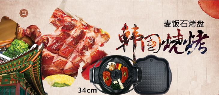 【炖锅/烤盘两用】韩国 麦饭石方形 烤盘 34cm