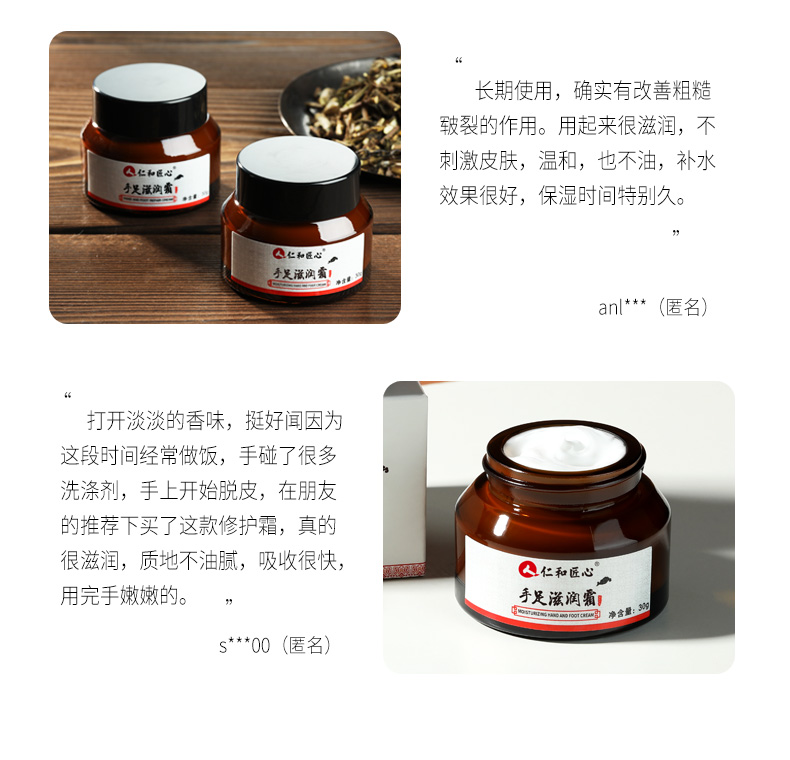 【买一送一】仁和匠心手足滋润霜 老品牌实力看得见 防干防裂/修护裂口/滋润保湿 三重修护 30g/瓶