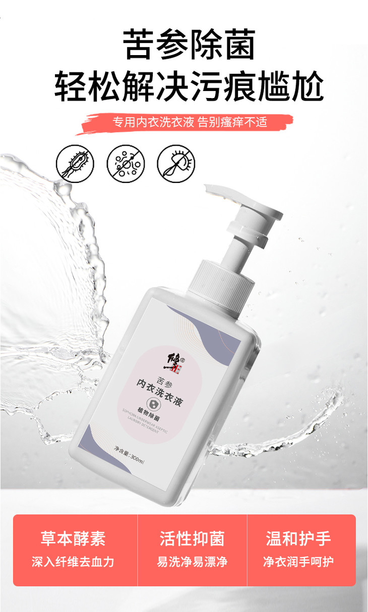 【呵护私密健康】草本酵素 苦参除jun 深入清洁 轻松解决污痕问题 呵护私处健康 修正苦参内衣内裤专用除jun洗衣液300ml