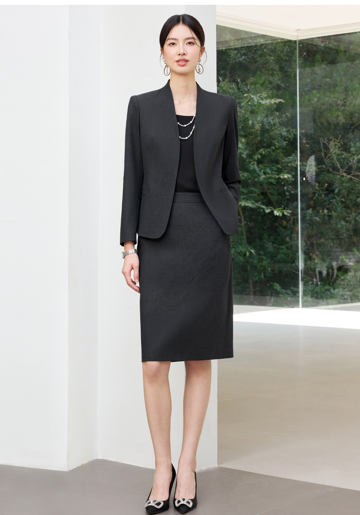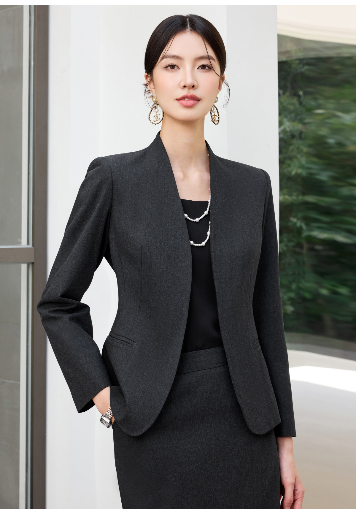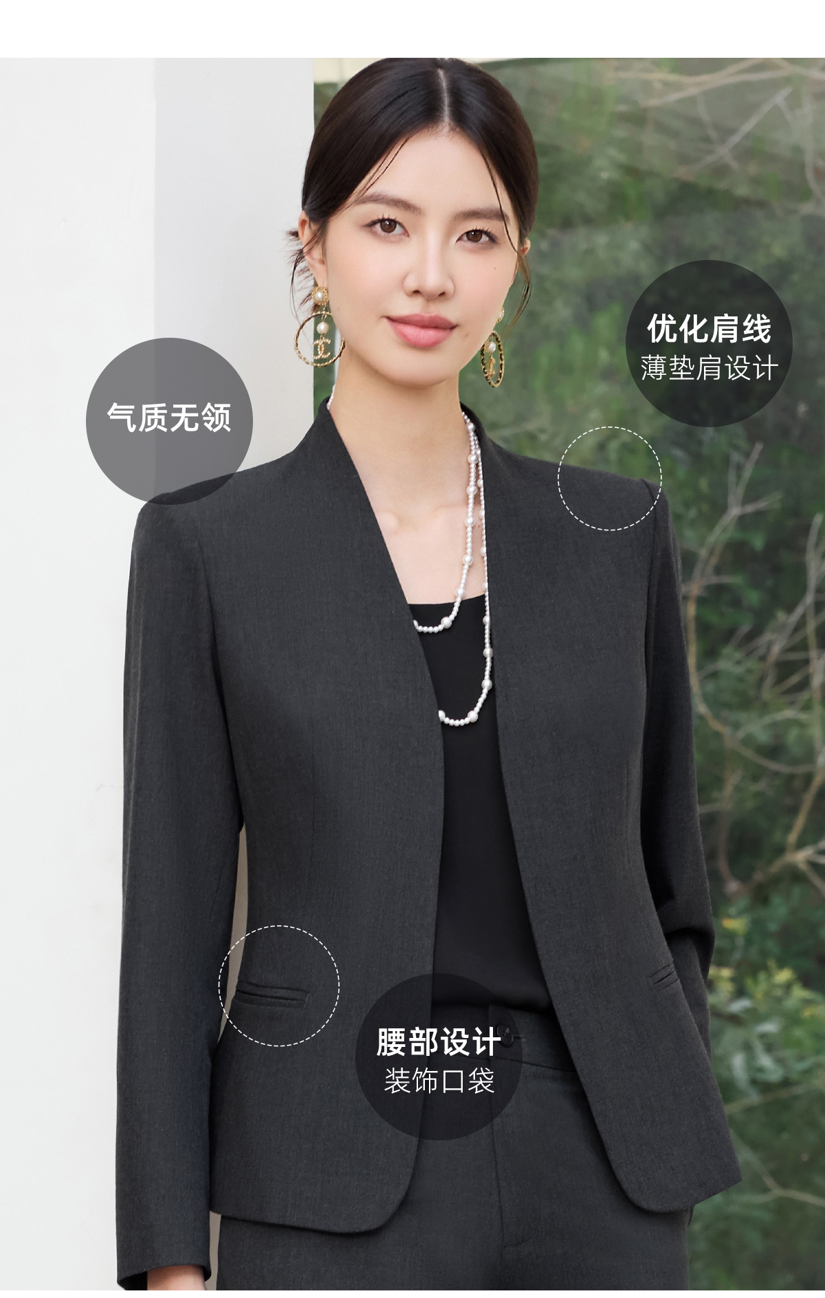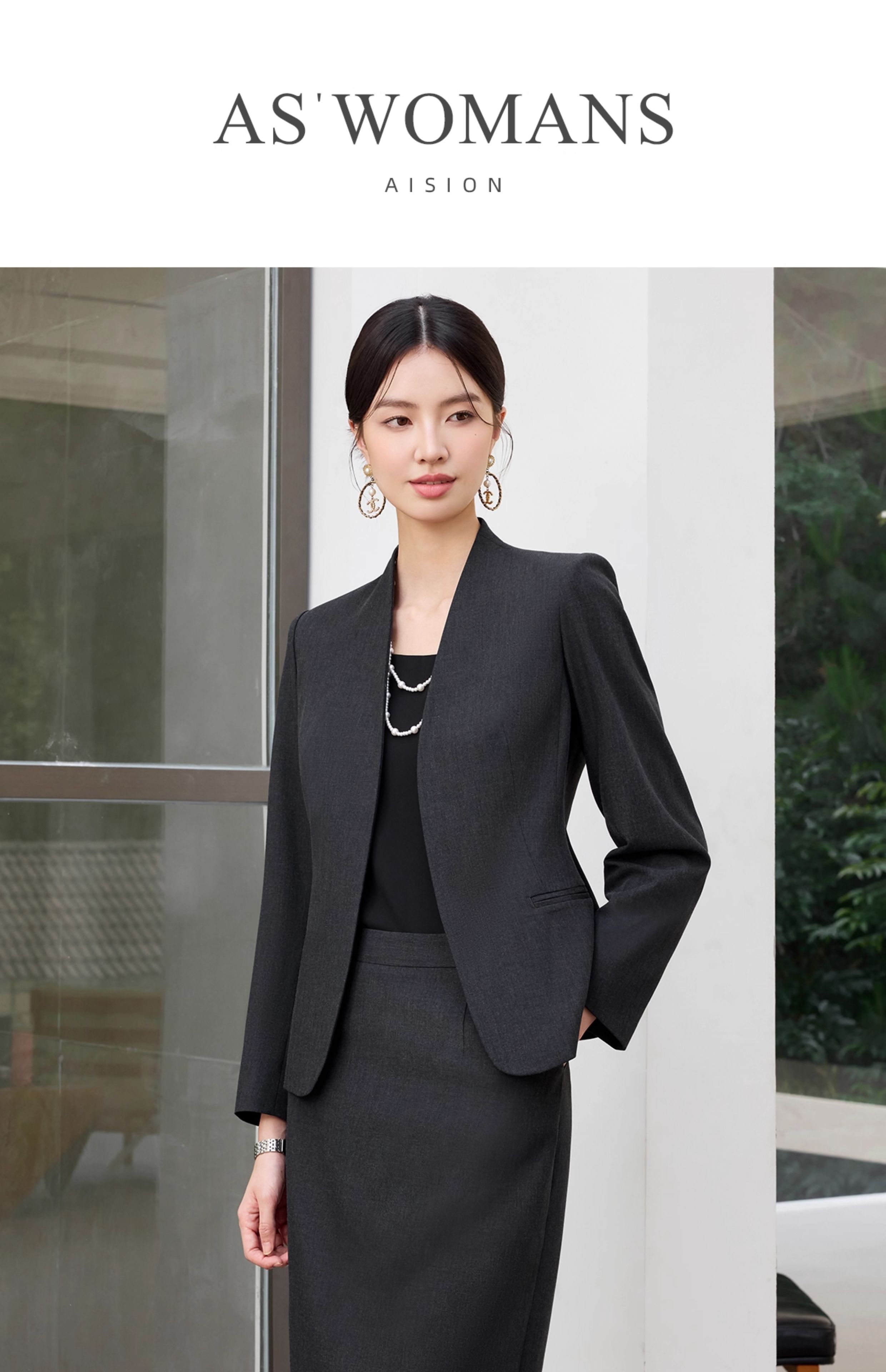 艾尚臣2025新款高级感时尚气质黑灰色西装酒店经理修身显瘦两件套