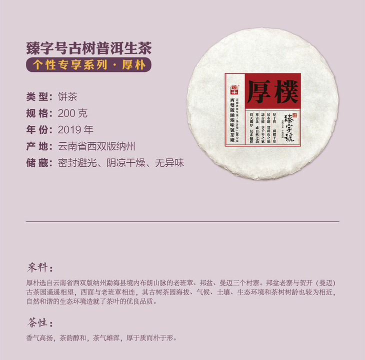 新品2019年臻字号个性专享系列【厚朴】普洱生茶250克 商品图3