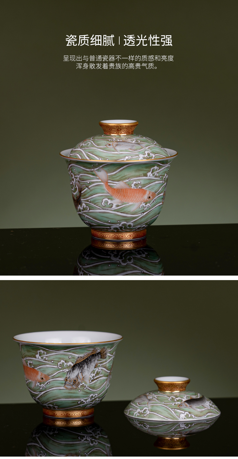 【宝瓷林】天青、豆青、明黄、紫金、祭蓝、玫瑰红颜色釉盖碗