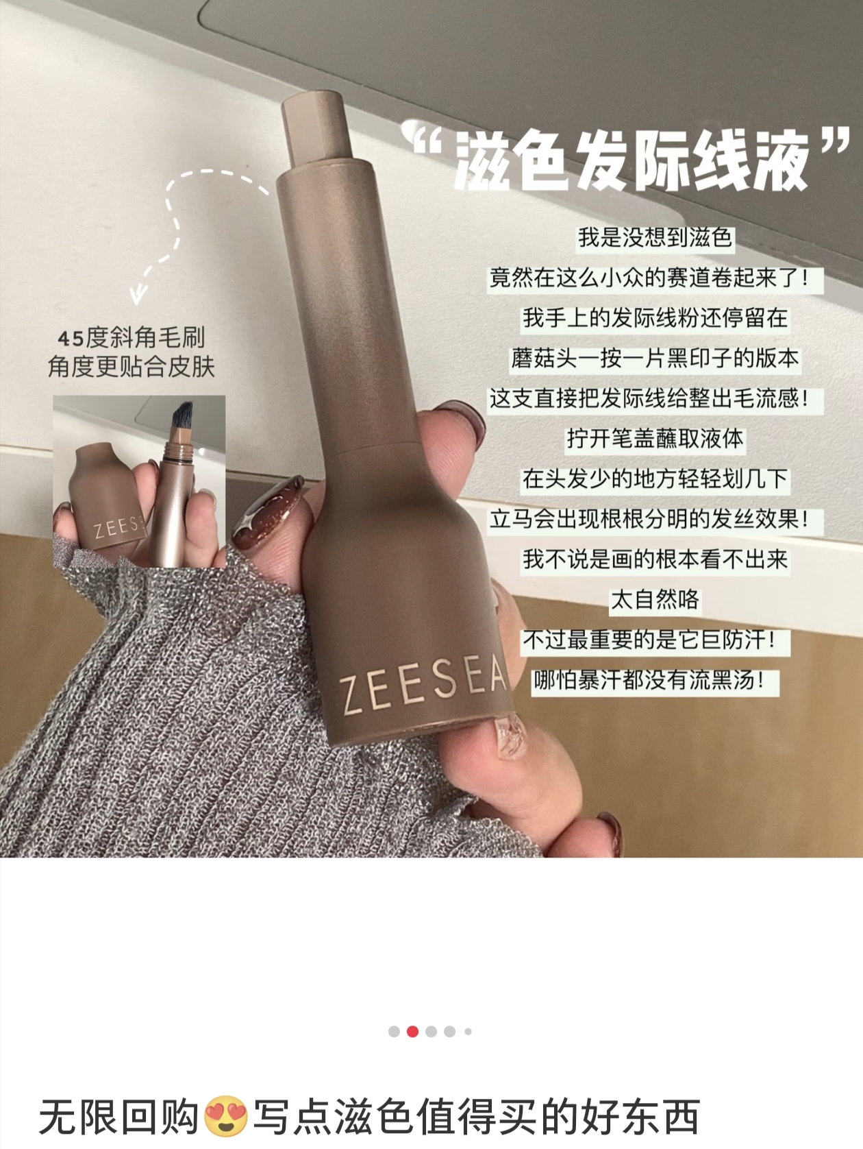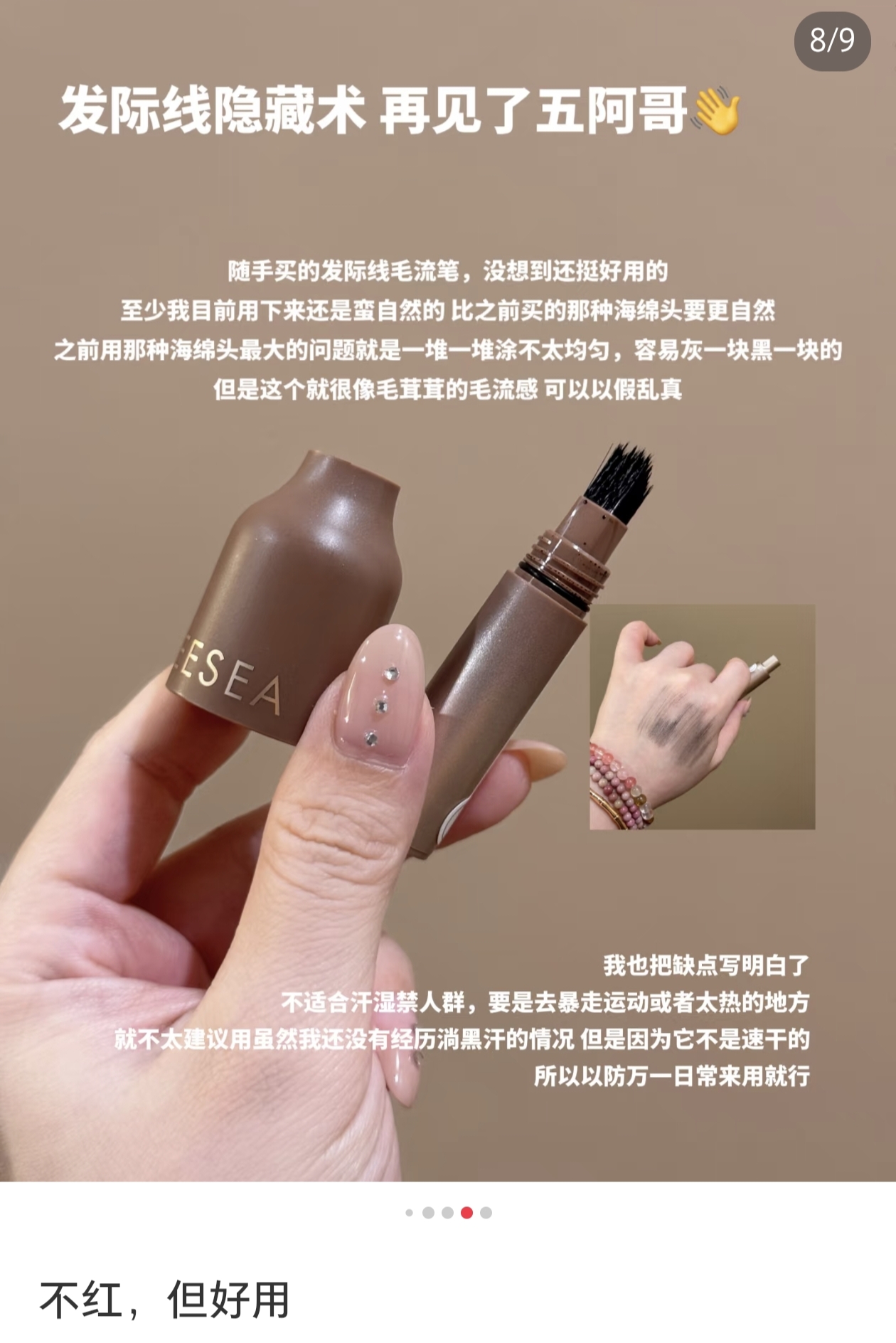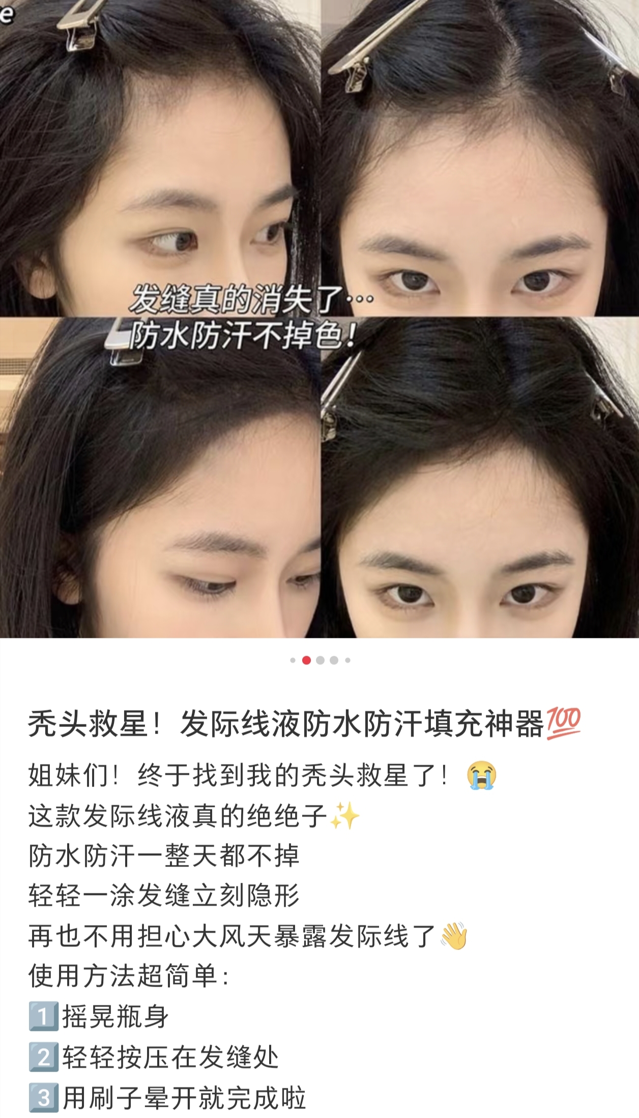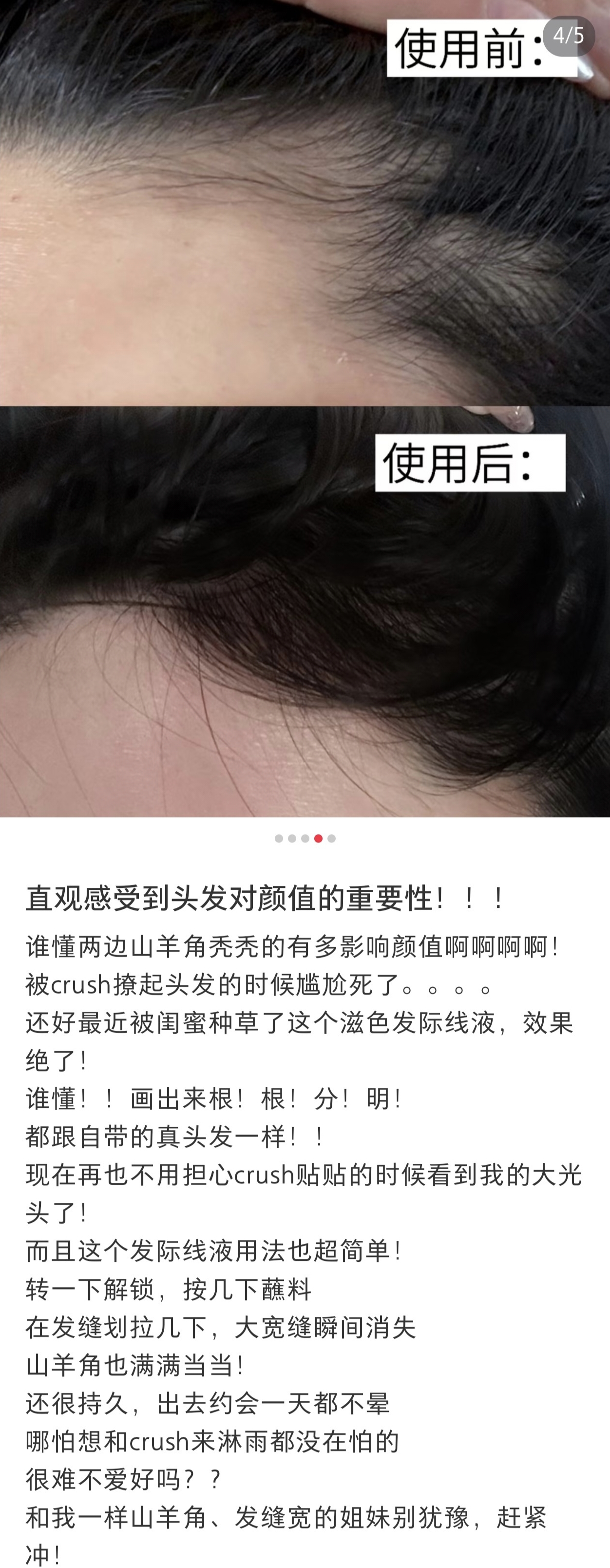 虽然我已经不化妆啦,见朋友也都是素颜,但对于发量,还是有一定追求的!这几年的大脱发,也是全靠头皮油浴外养+营养素内调,发量总体稳稳在线!但发际线的两个小三角,还是有些微稀疏,小毛毛太过细软,这支毛流感发际线液,也很适合我哎,刷上超自然,有发丝感,关键是还防水,不会像普通发际线粉一样下个雨出个汗就流黑水!