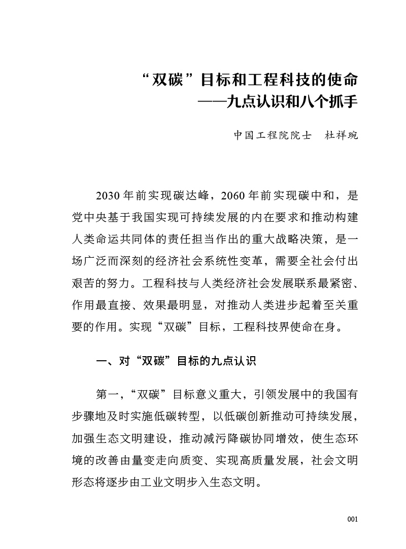 实现绿色低碳转型 贡献中国智慧.院士篇 大道碳中和项目组编