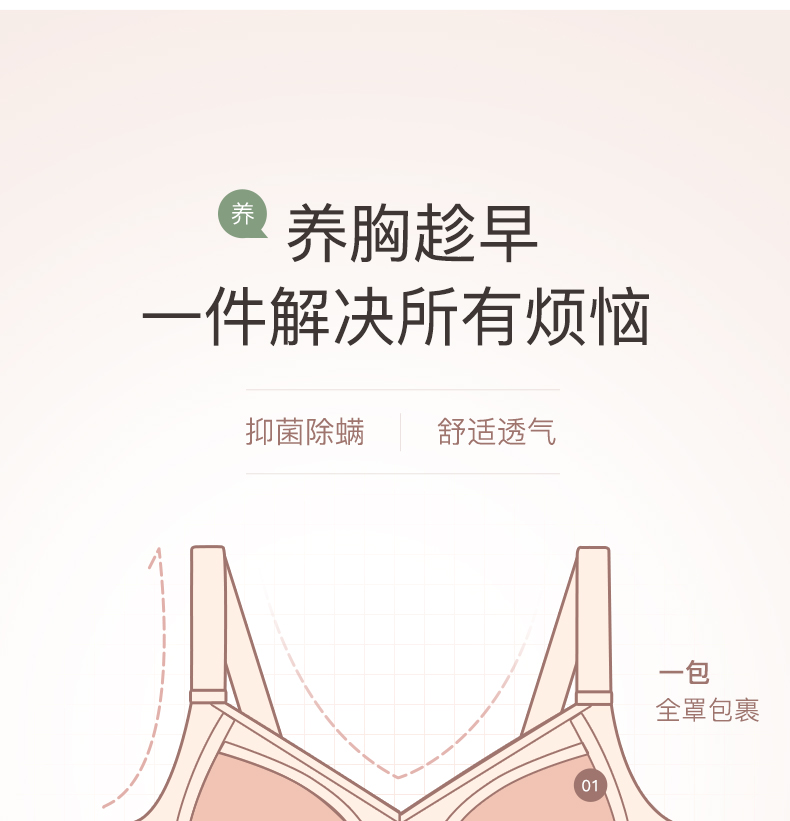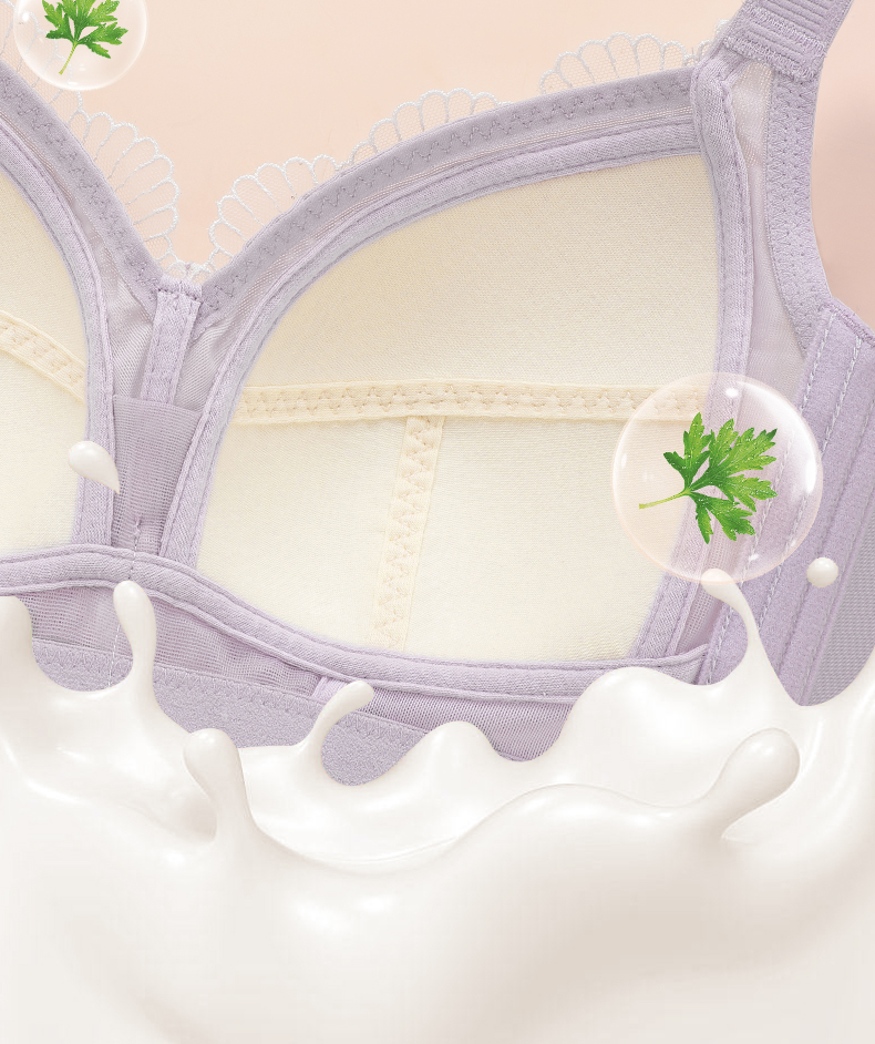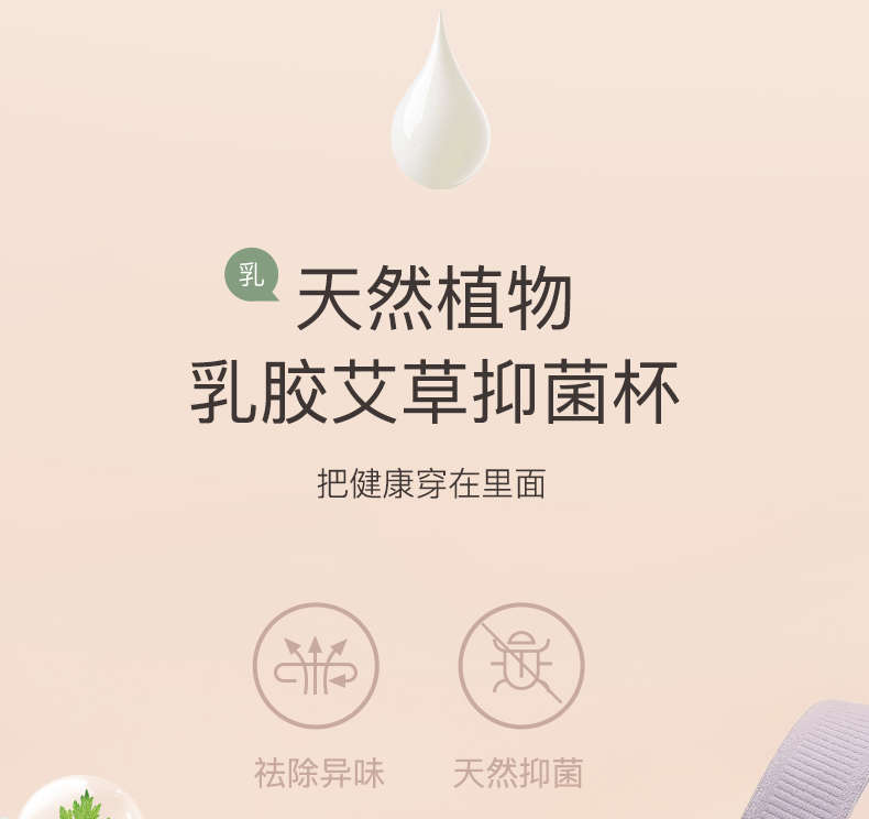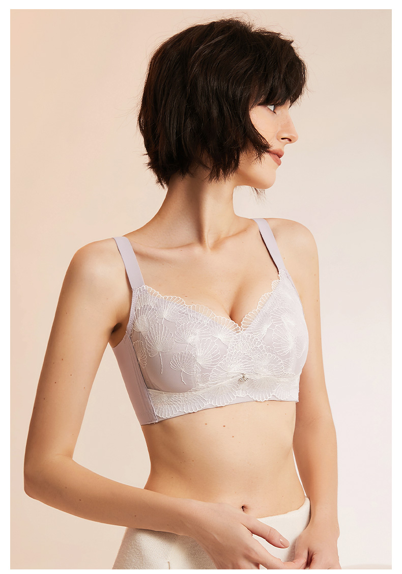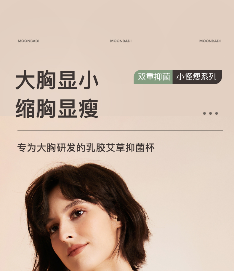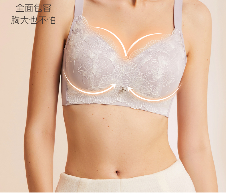 梦芭蒂乳胶艾草内衣女大胸显小无钢圈文胸收副乳防下垂胸罩蒲公英