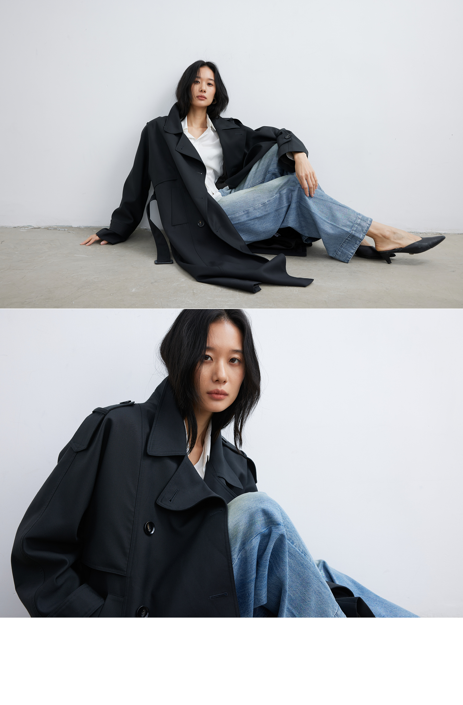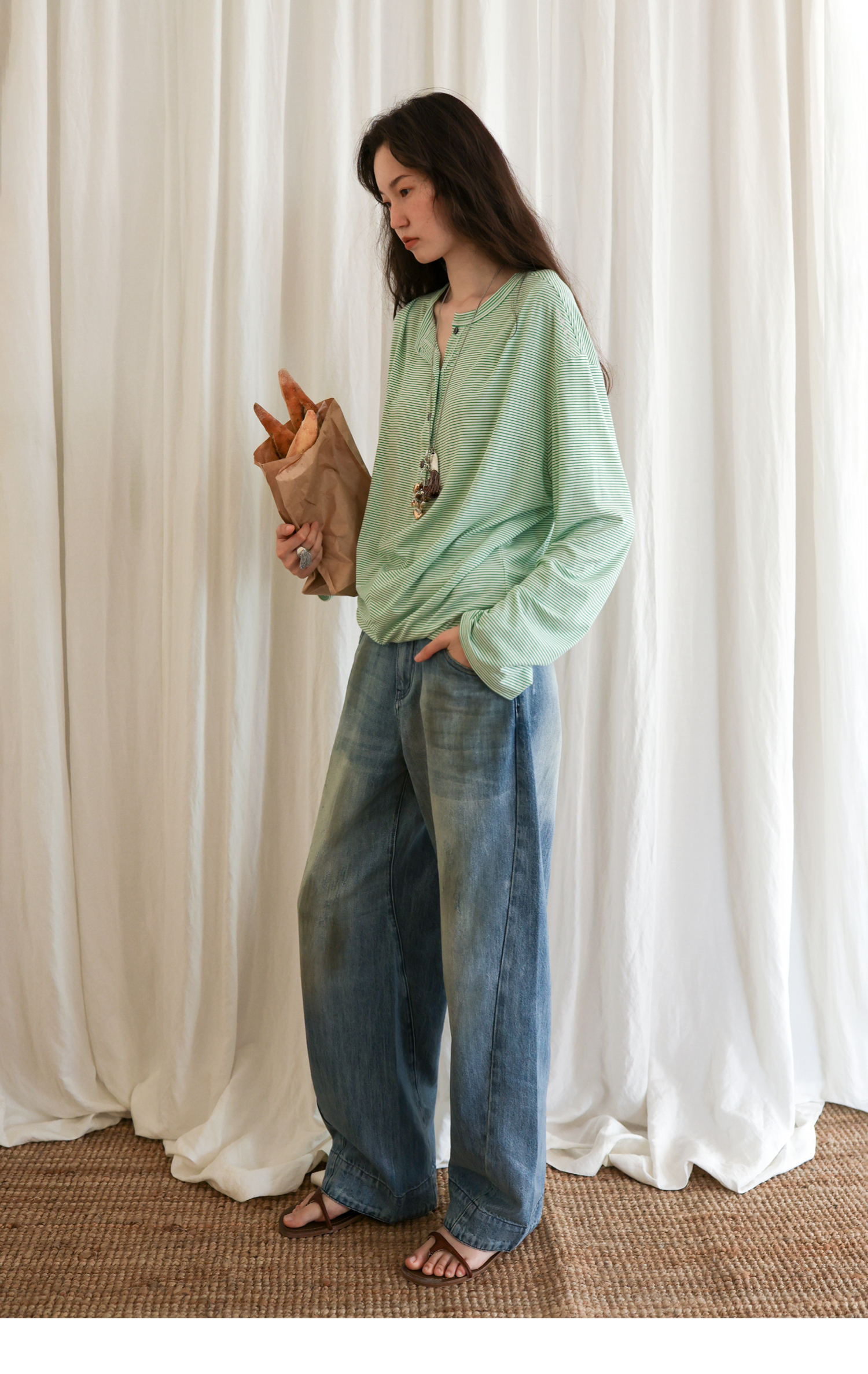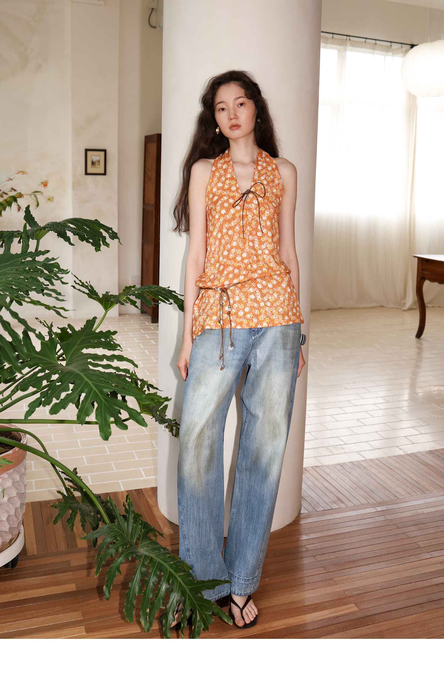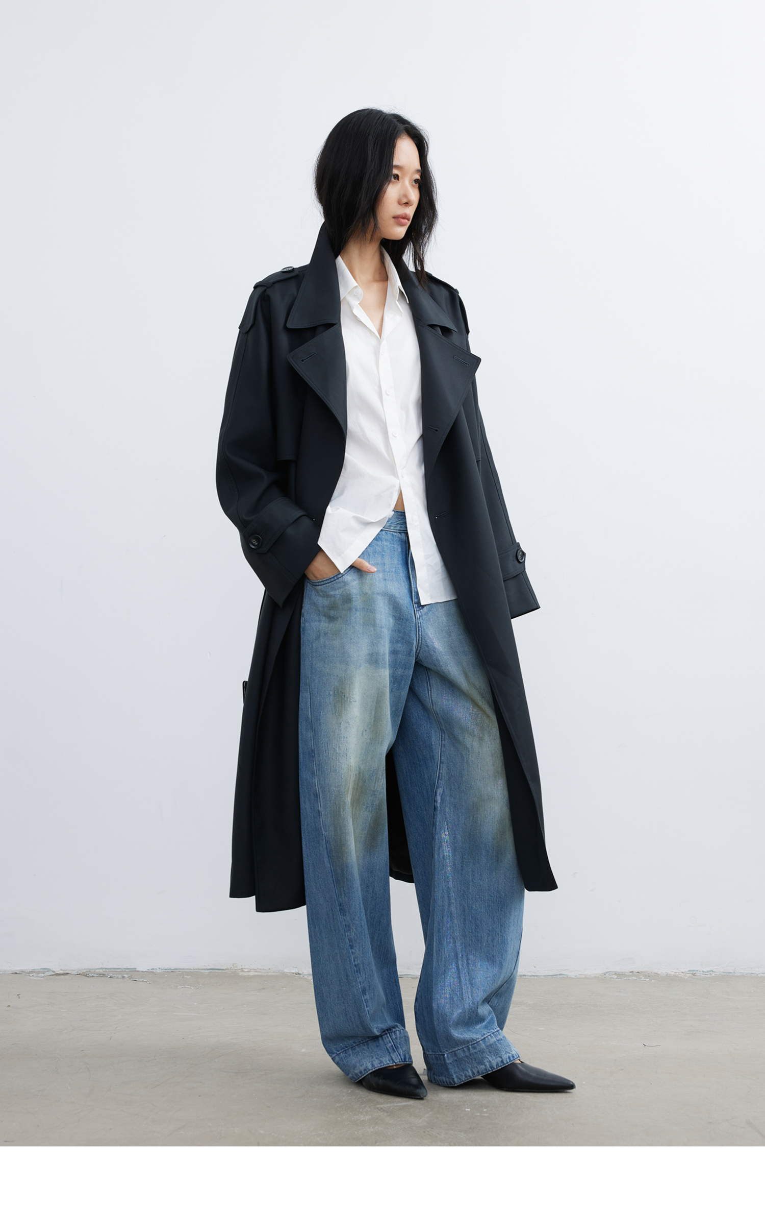 素舶 全棉牛仔面料舒适透气闪粉人鱼姬涂层抹脏宽松弯刀牛仔裤