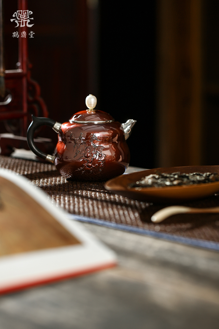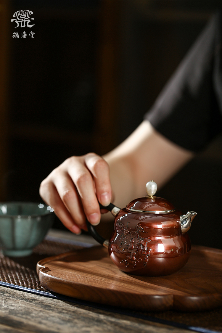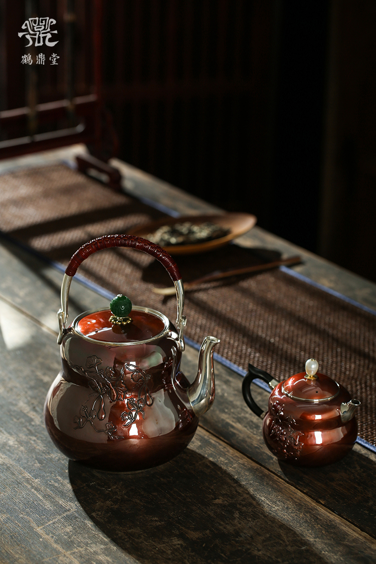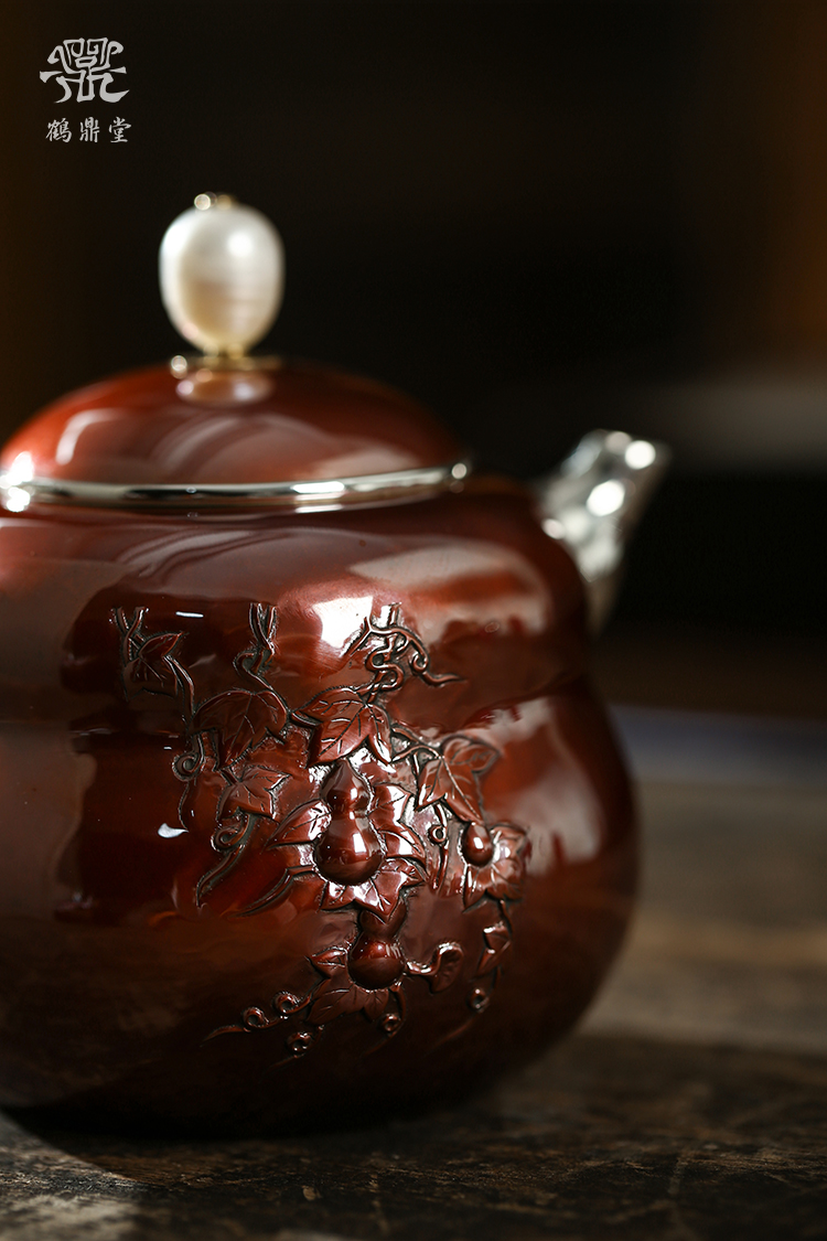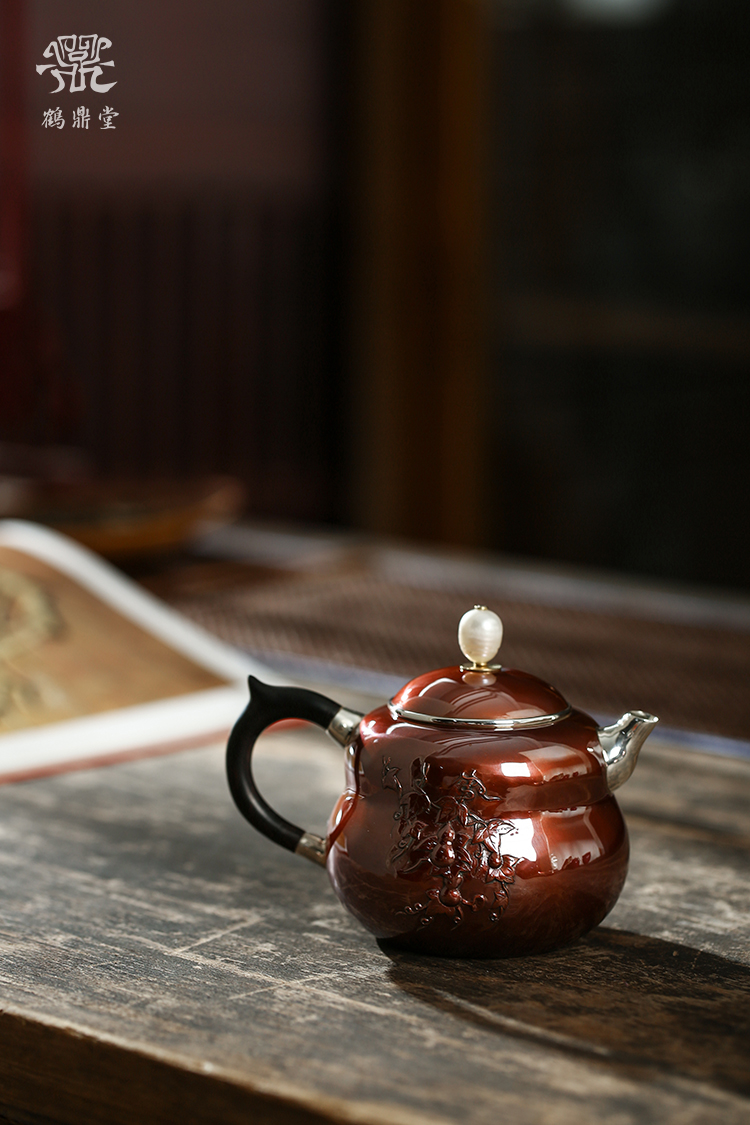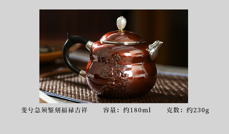 鹤鼎堂银壶于飞系列斐兮急须錾刻福禄吉祥(铜包银)(缺货)