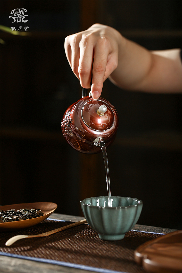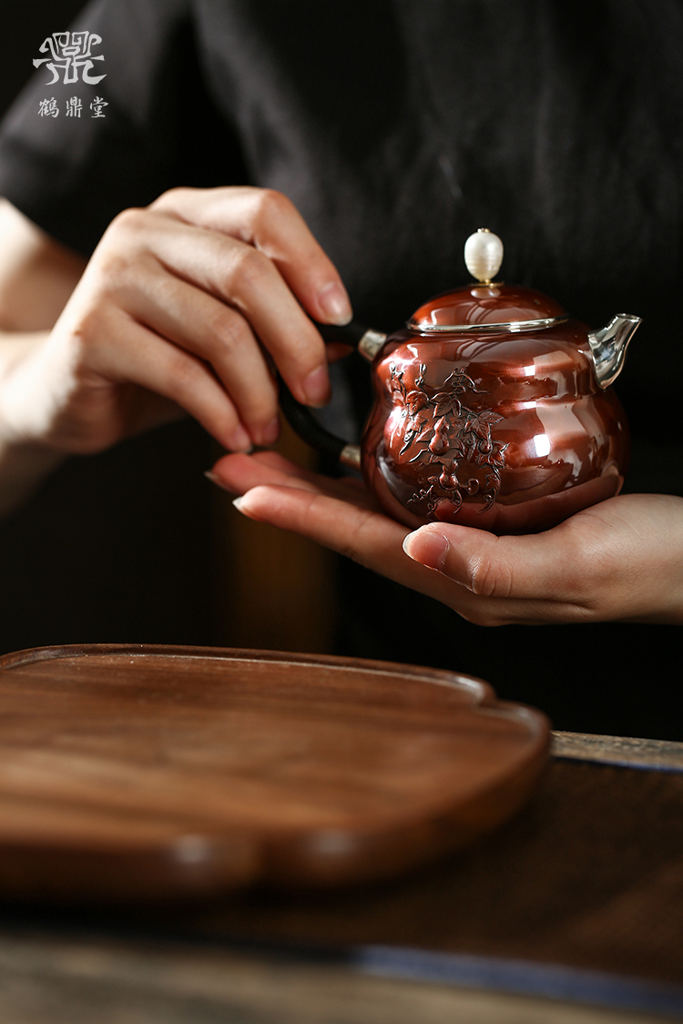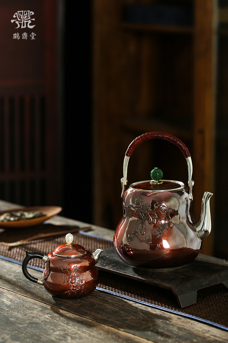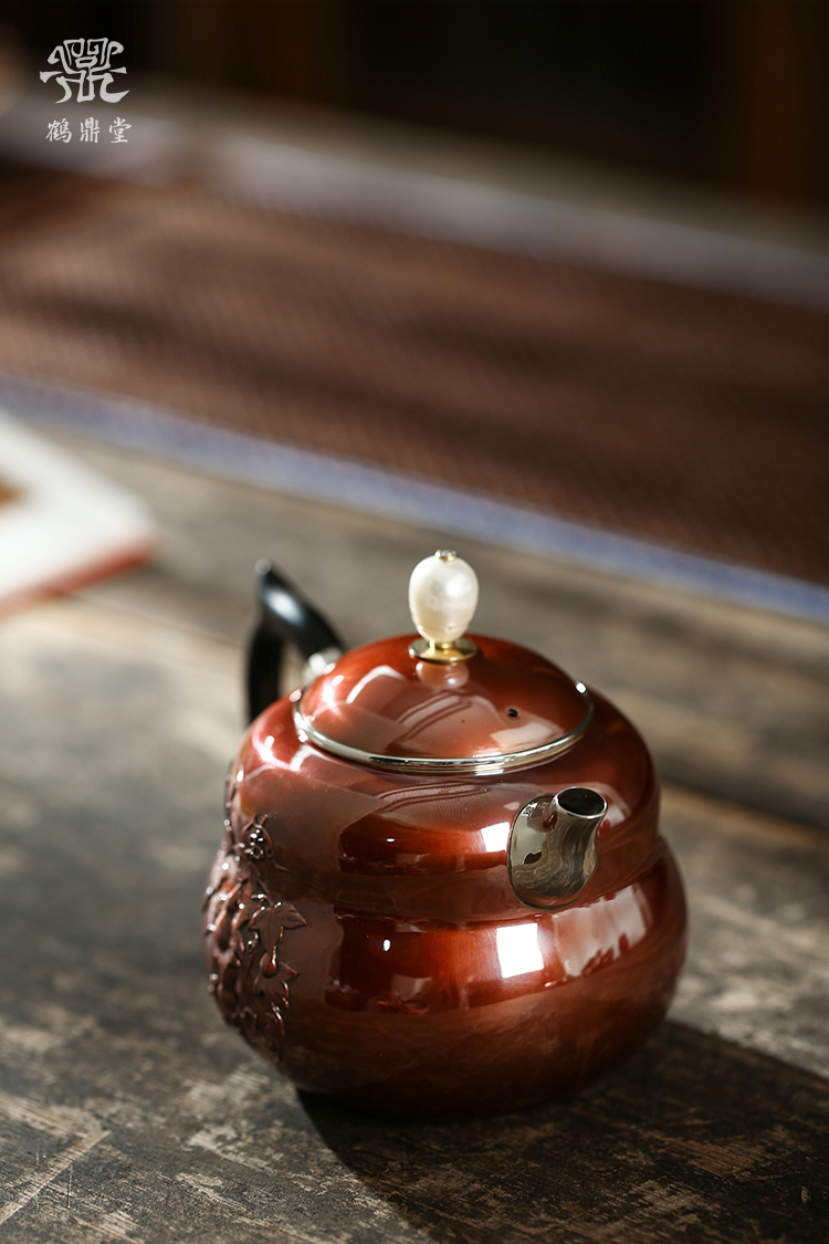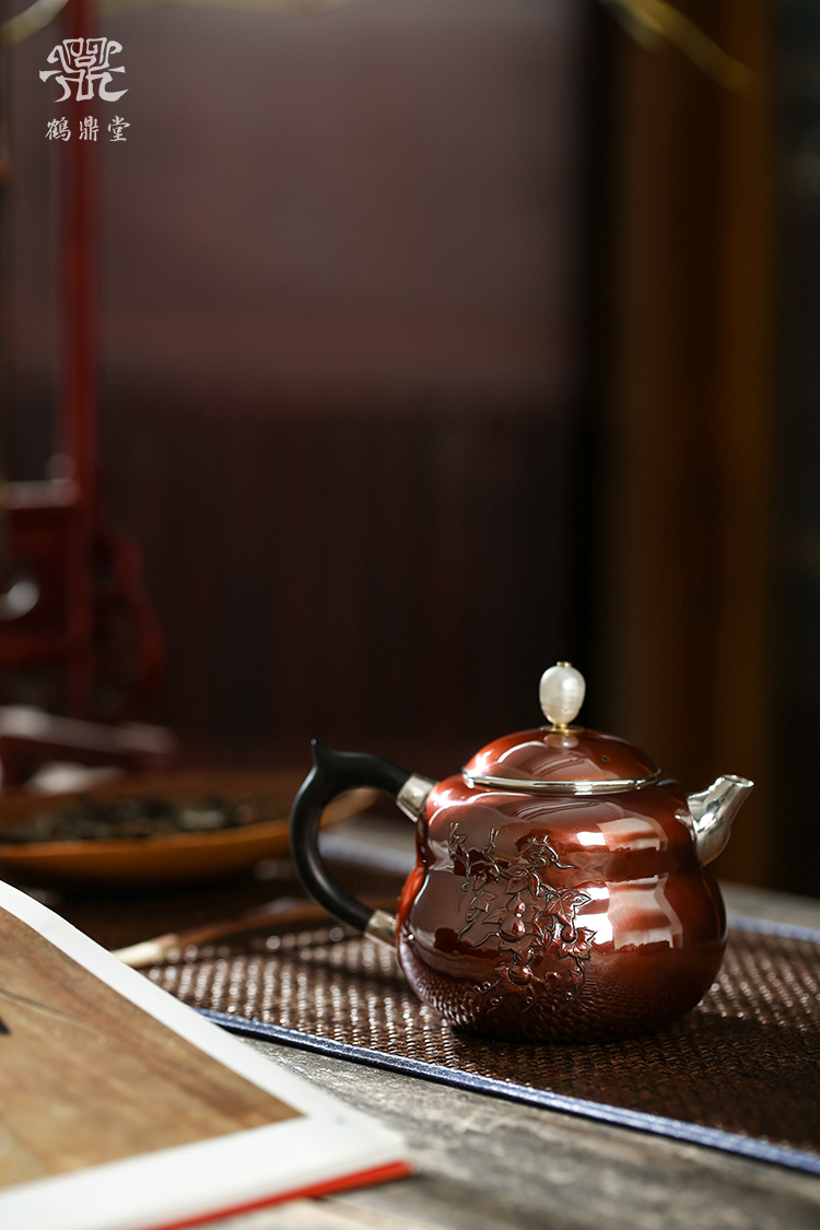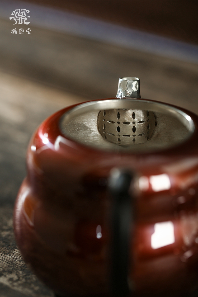 鹤鼎堂银壶于飞系列斐兮急须錾刻福禄吉祥(铜包银)(缺货)