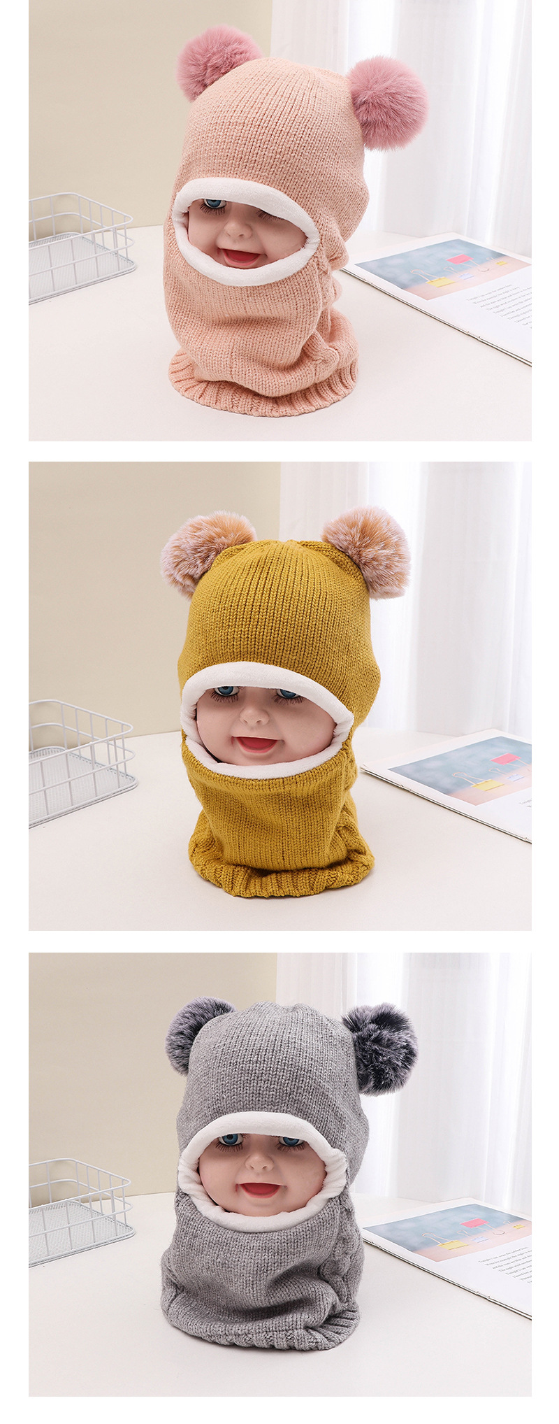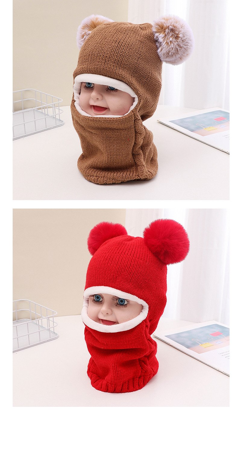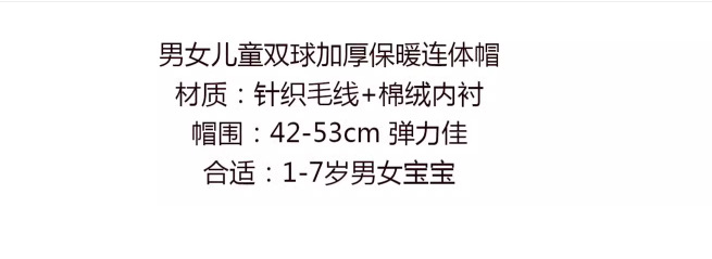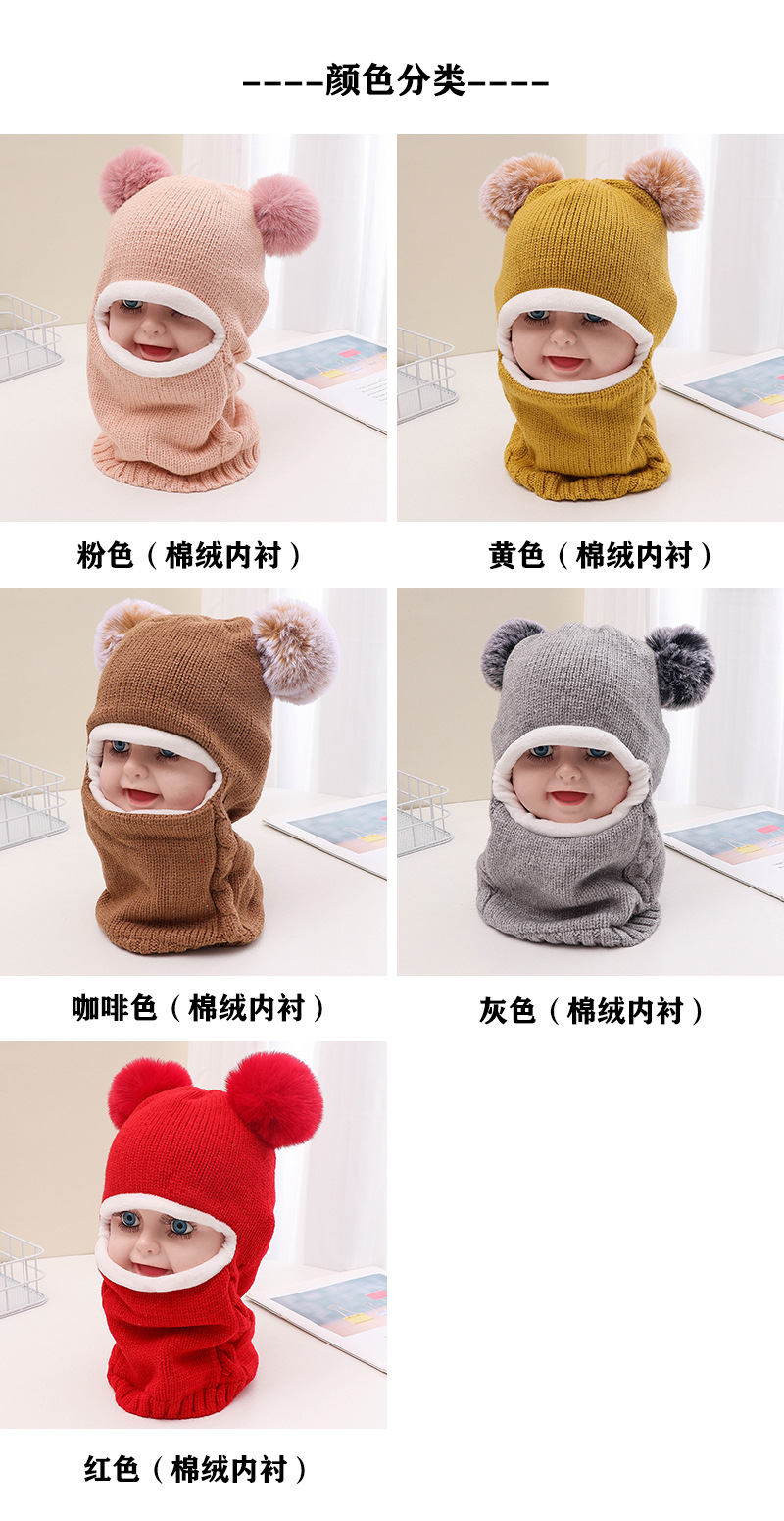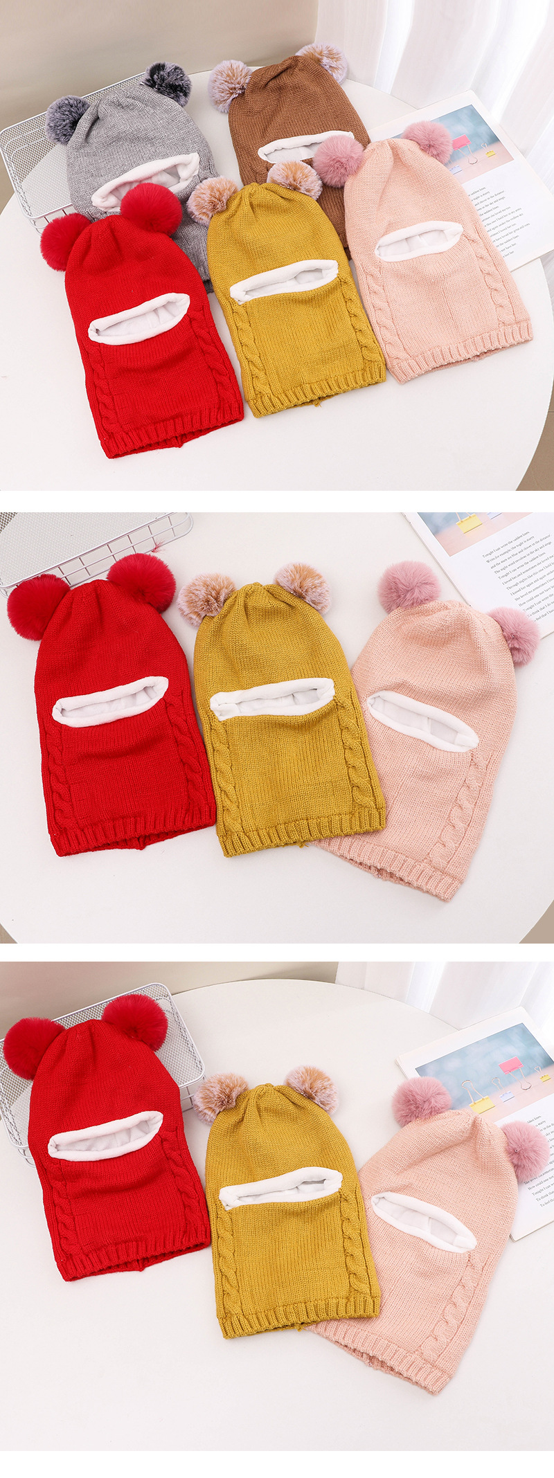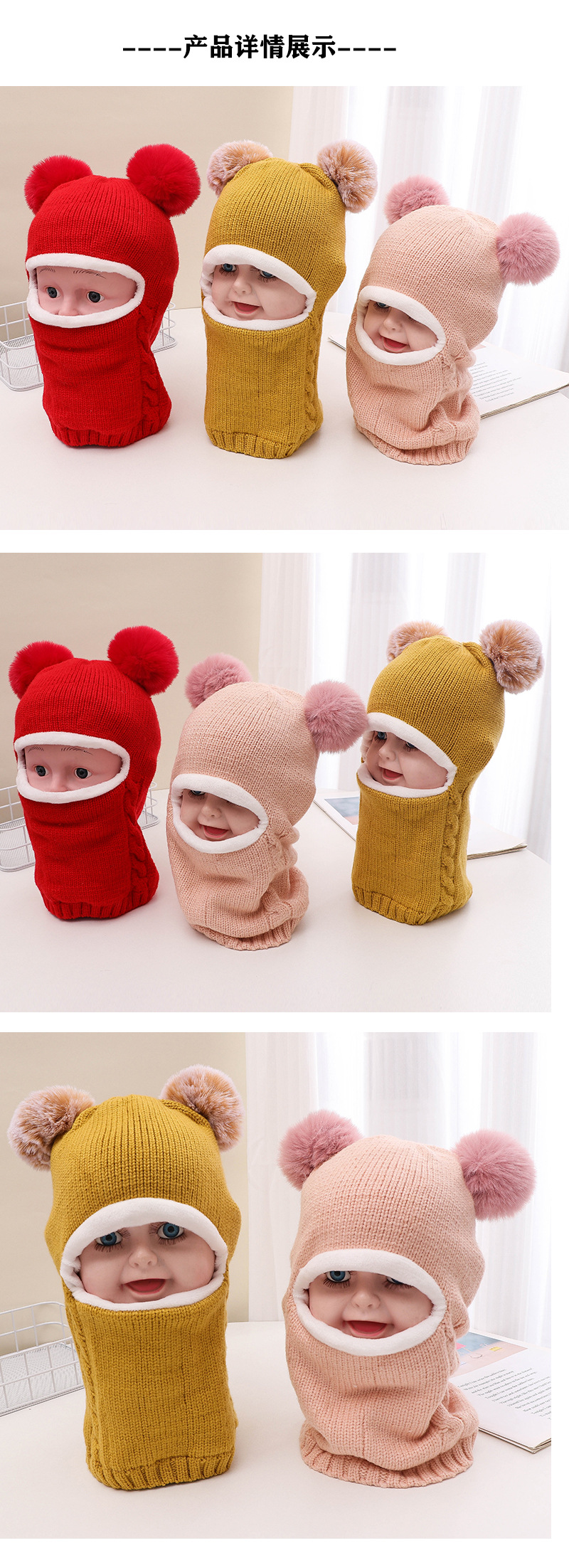 儿童双球毛线套头帽秋冬季男女童可爱护脸耳连体帽宝宝保暖风雪帽