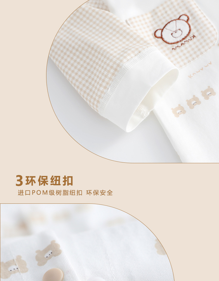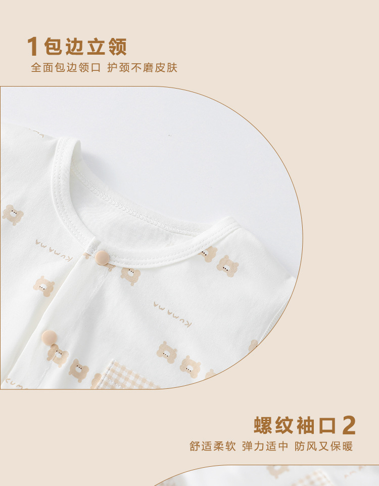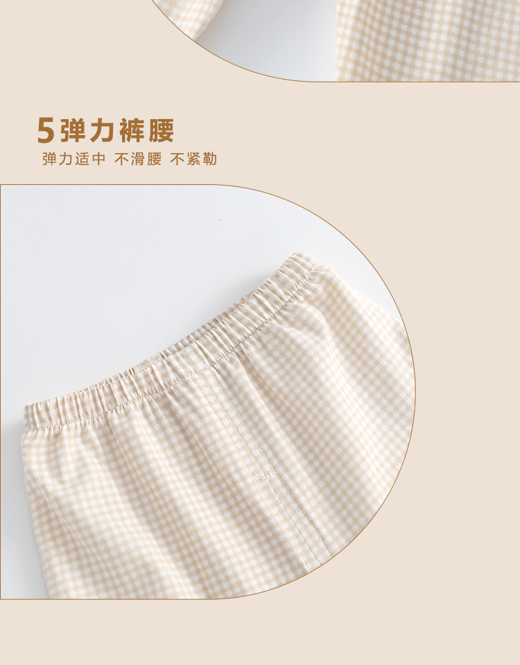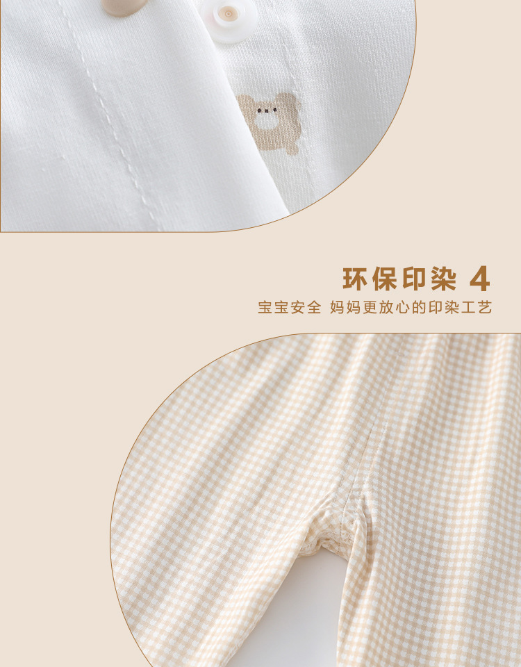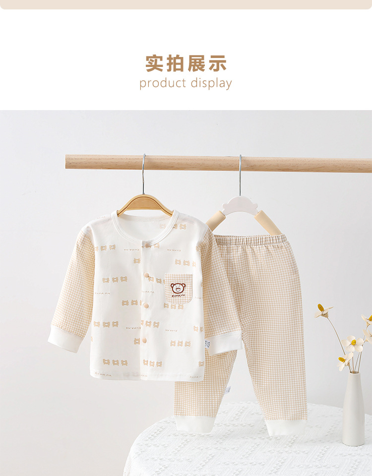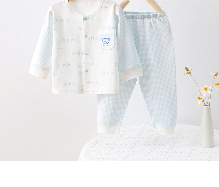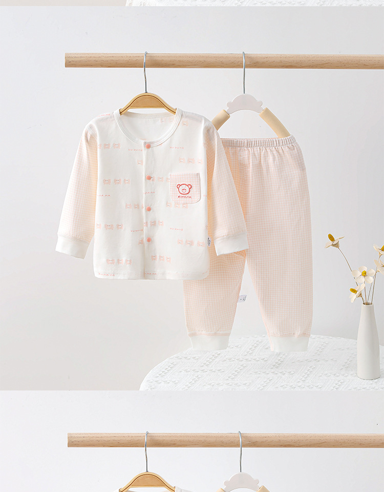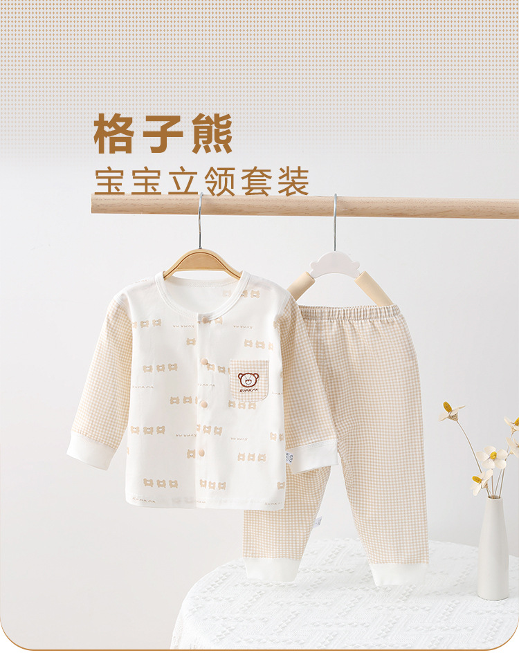 【格子熊宝宝立领分体套装】夏季分体套装婴儿衣服空调服a类无骨宝宝睡衣薄款长袖对开两件套